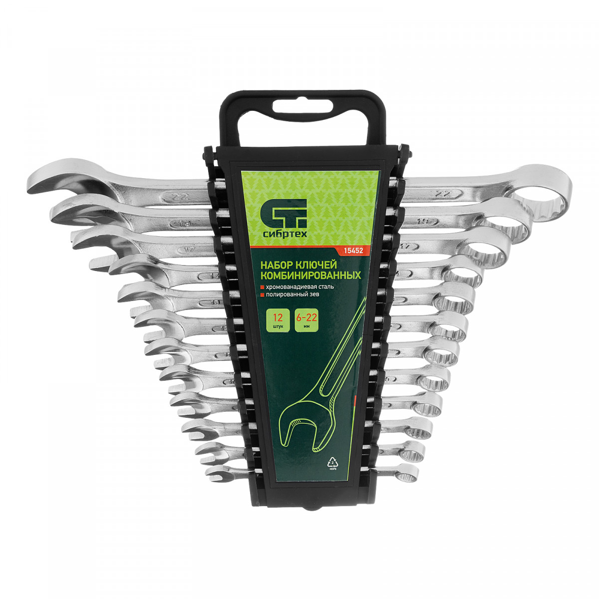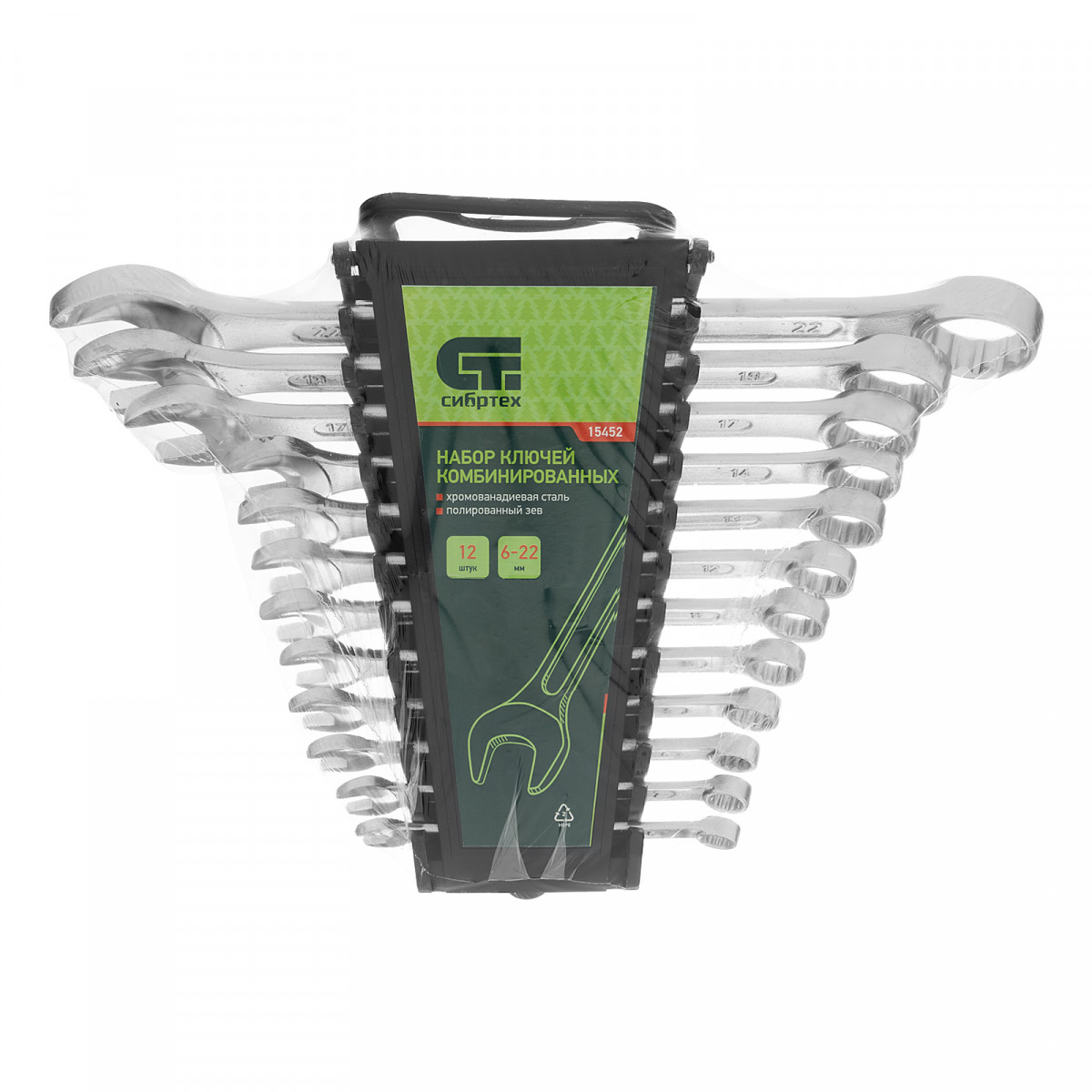 Набор ключей комбинированных, 6-22 мм, CrV, 12 шт Сибртех