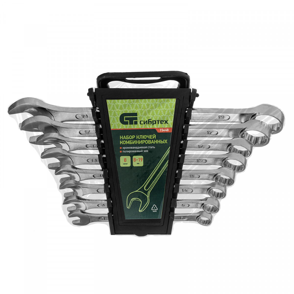 Набор ключей комбинированных, 8-19 мм, CrV, 8 шт Сибртех