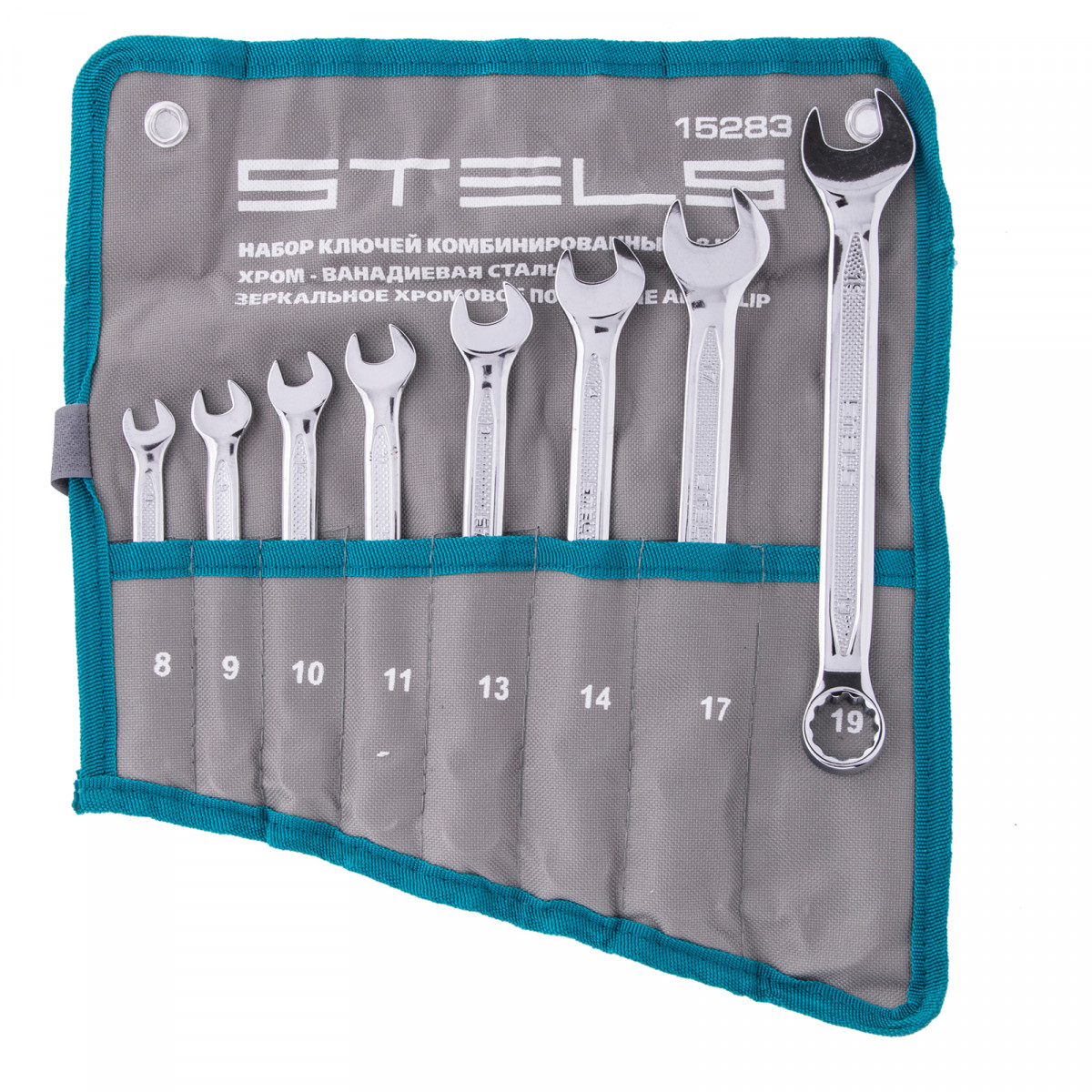 Набор ключей комбинированных 8 шт, 8-19 мм, антислип Stels