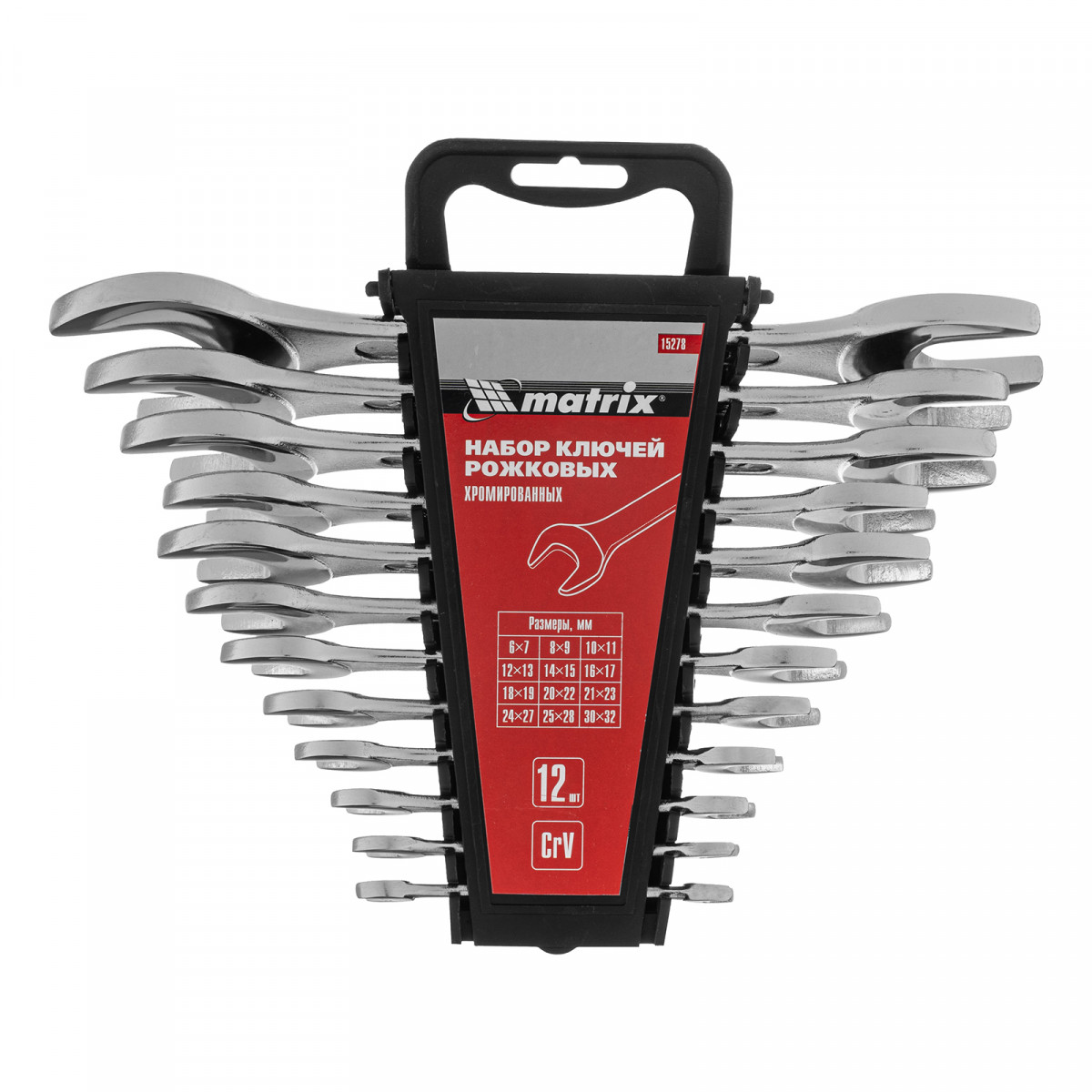 Набор ключей рожковых, 6 х 32 мм, 12 шт., CrV, хромированные Matrix