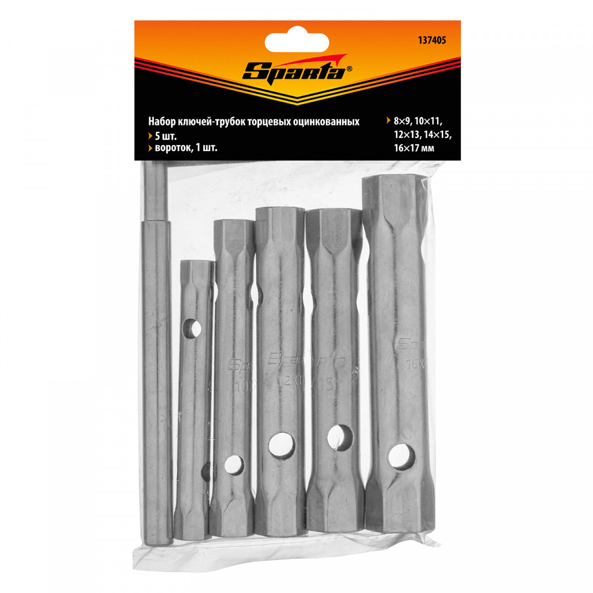 Набор Sparta 137405 включает 6 предметов: 5 оцинкованных торцевых ключей-трубок размером 8 x 17 мм и вороток. Позволяет откручивать и закручивать крепежные элементы с шестигранным профилем, расположенные в труднодоступных местах. Входящий в комплект вороток облегчает вращение ключей.