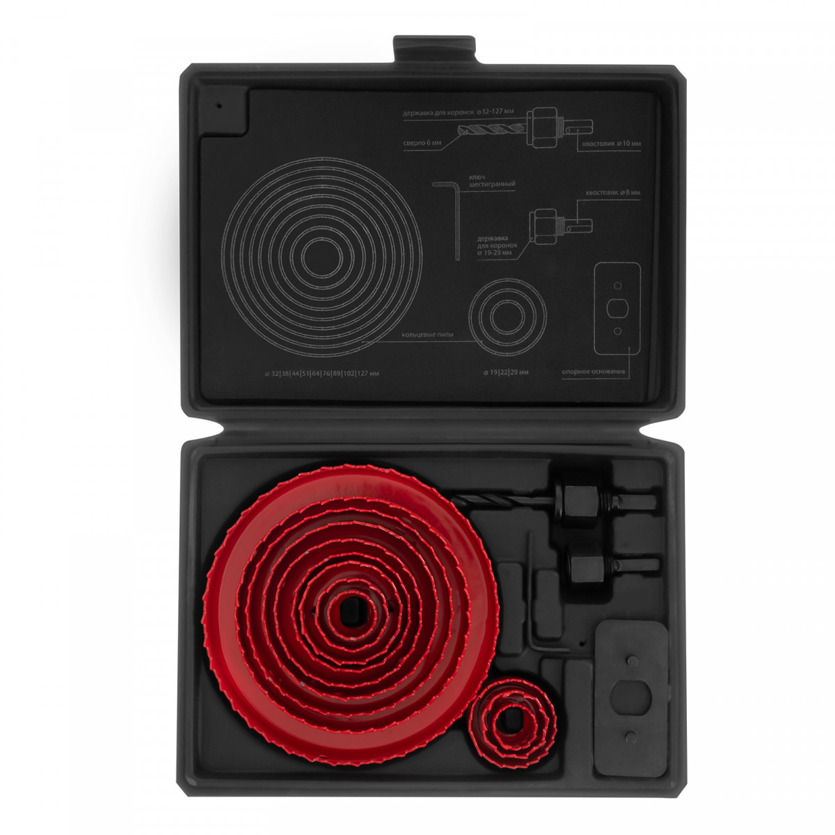 - Удобное хранение и транспортировка — набор поставляется в пластиковом кейсе с ложементами для отдельных предметов.
