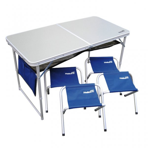 Набор мебели (стол и 4 табурета) - отличное решение для выезда на природу. Табуреты складываются внутрь стола, что существенно экономит место при транспортировке.