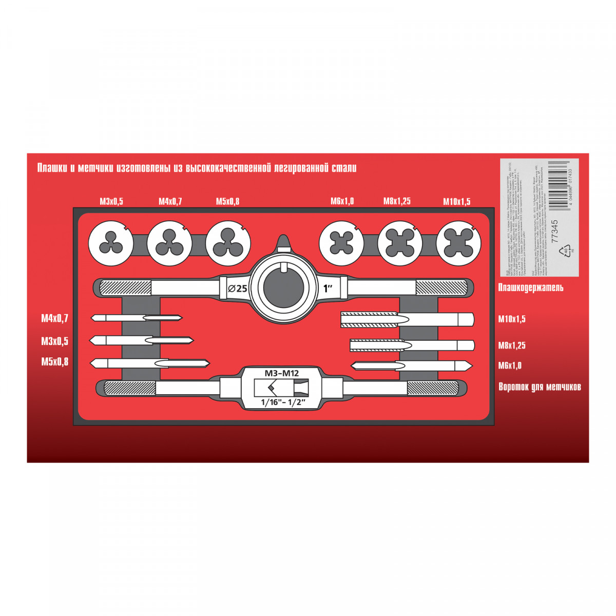 • Быстрый поиск нужного предмета — на каждом инструменте имеется маркировка с обозначением шага и размера резьбы.