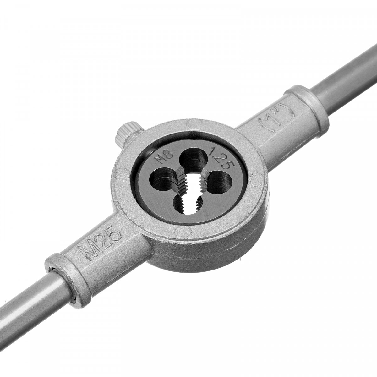 • Комфортная и эффективная работа — плашку удерживают в держателе боковые винты, метчик крепко фиксируется в воротке посредством регулируемого винтового механизма.