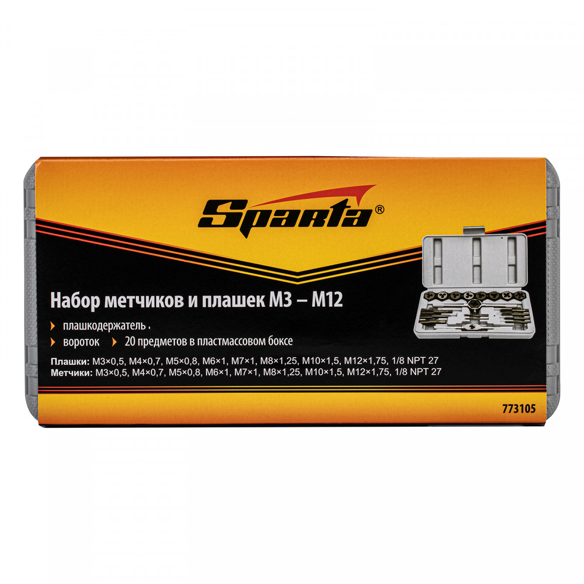 Набор метчиков и плашек М3-М12, плашко-метчикодержатель, 20 предметов, пластиковый бокс Sparta