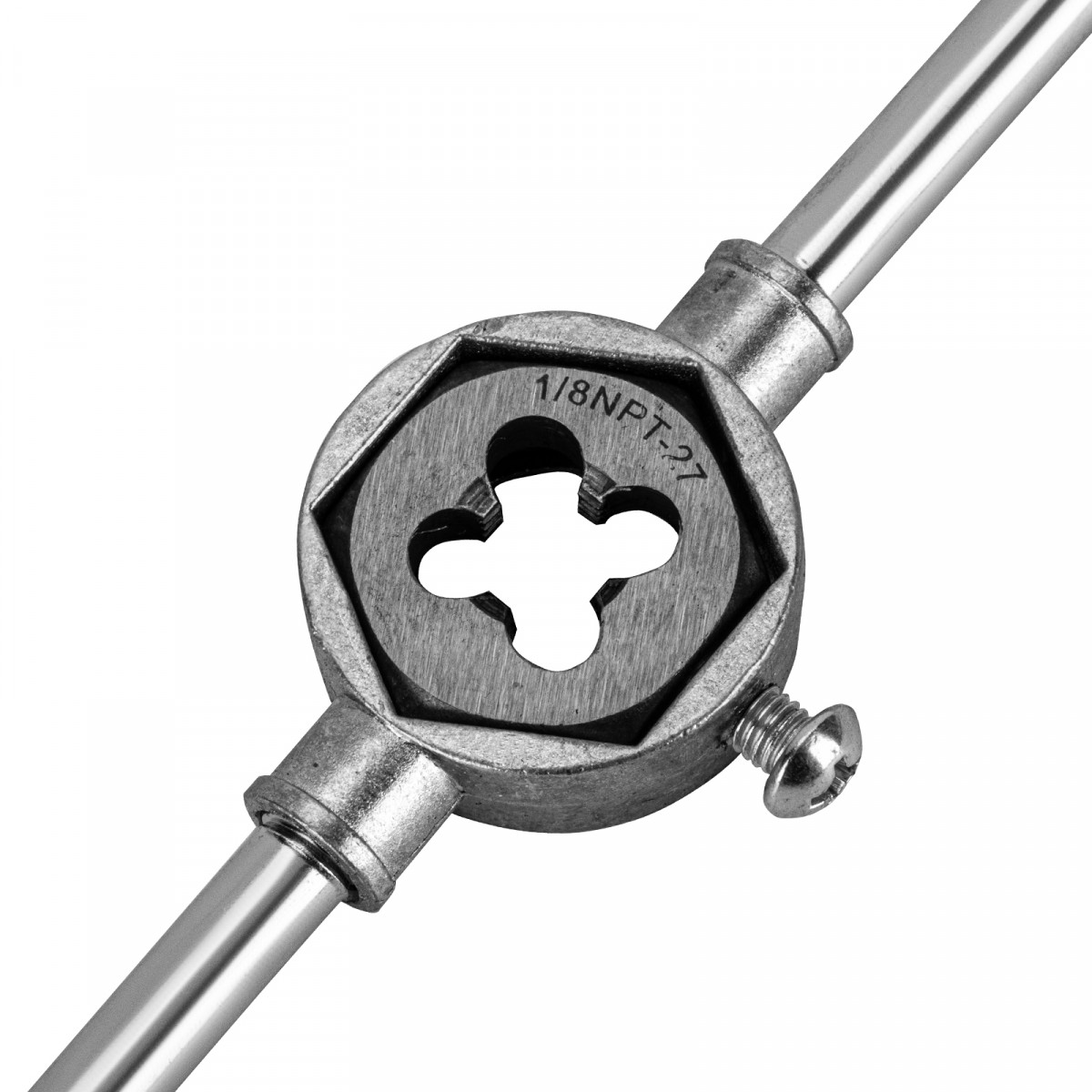 • Получение ровной внешней резьбы — плашка закрепляется при помощи бокового винта и не проворачивается в держателе.