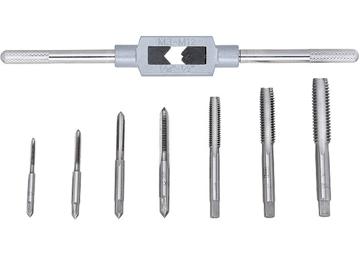 Метчики и плашки в наборах изготовлены из инструментальной стали 9ХС, твердость 60…64 HRC. Они позволяют нарезать резьбу по различным сталям и сплавам. В комплект входят инструменты с наиболее распространенным основным шагом резьбы. Наборы укомплектованы универсальными метчико- и плашкодержателями.