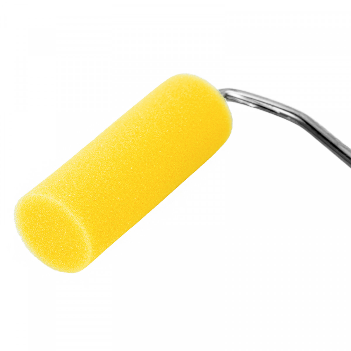 - Компактность и закругленная форма — миниатюрные валики диаметром 35 мм и шириной 100 мм эффективно прокрашивают небольшие поверхности, стыки, углы и труднодоступные места.