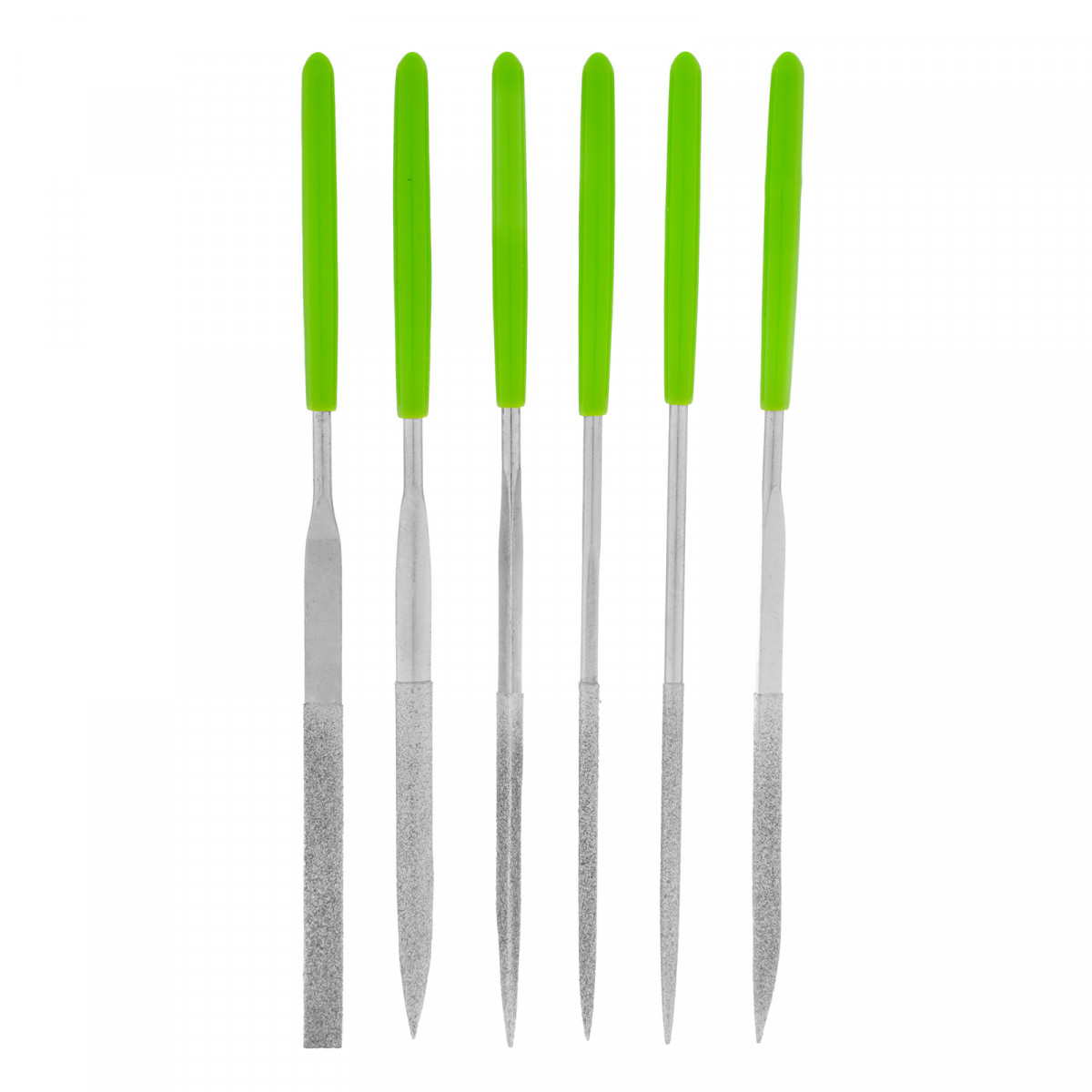 Плоский тупоносый надфиль - 1 штКруглый надфиль - 1 штТрехгранный надфиль - 1 штПолукруглый надфиль - 1 штКвадратный надфиль - 1 штПлоский остроконечный надфиль - 1 шт