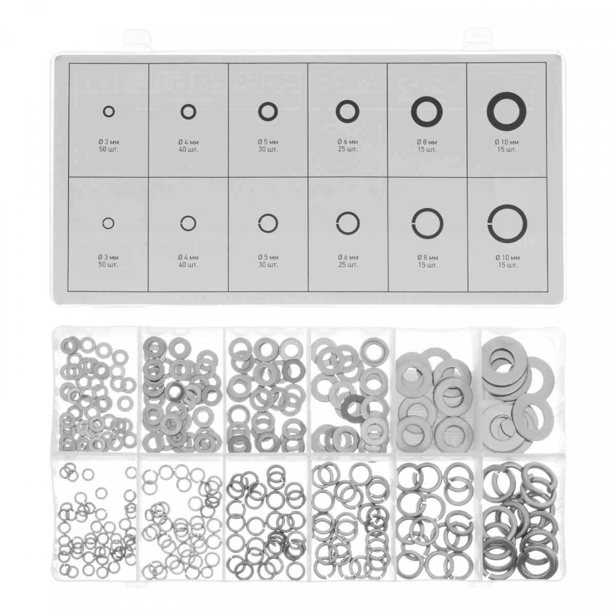 • Широкие возможности применения — в набор входят шайбы самых популярных размеров.