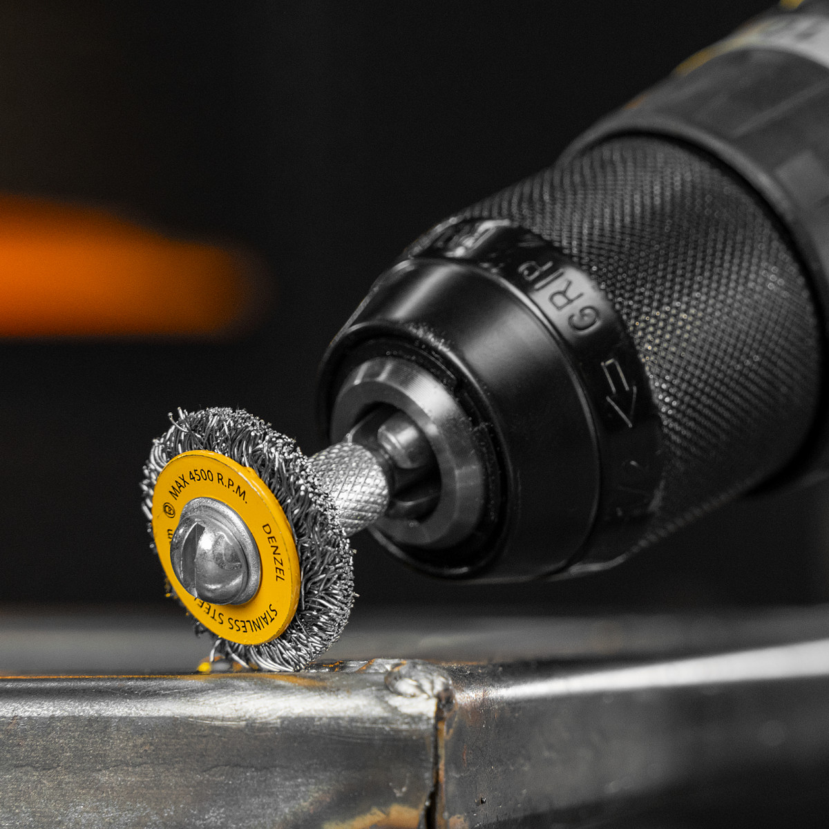 - Быстрая подготовка к работе — щетки имеют хвостовик диаметром 6 мм для установки в патрон дрели.