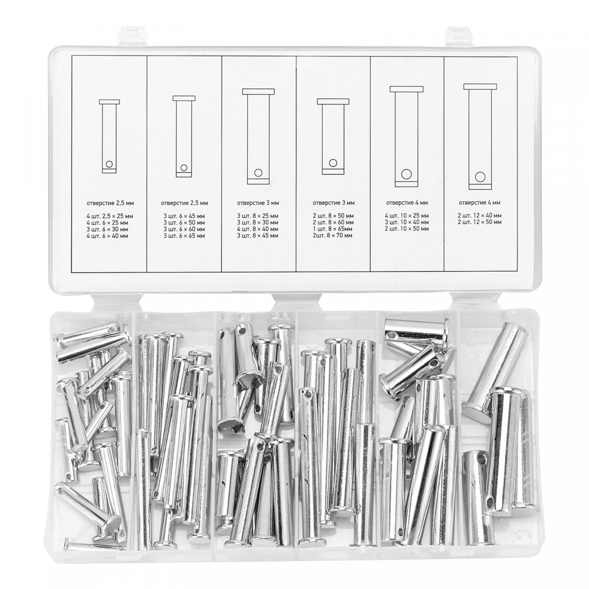 Набор штифтов с головкой и отверстием под шплинт, 60 предметов Сибртех