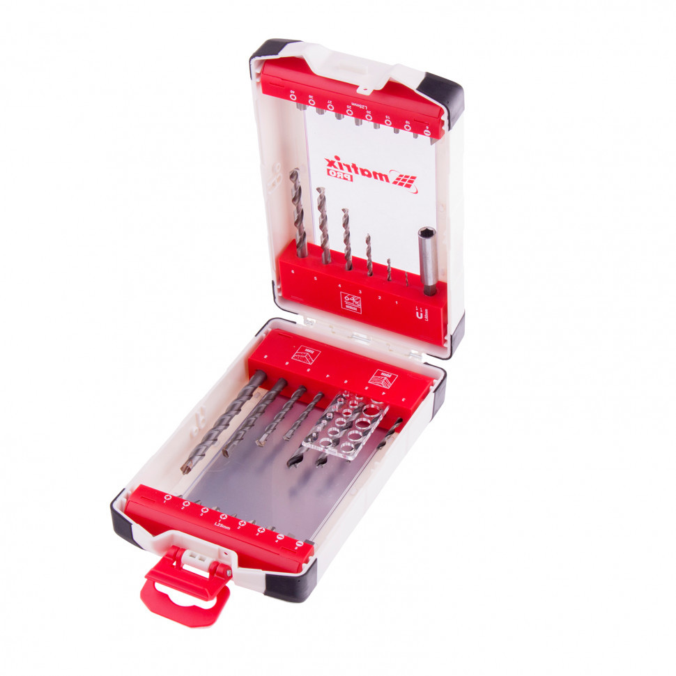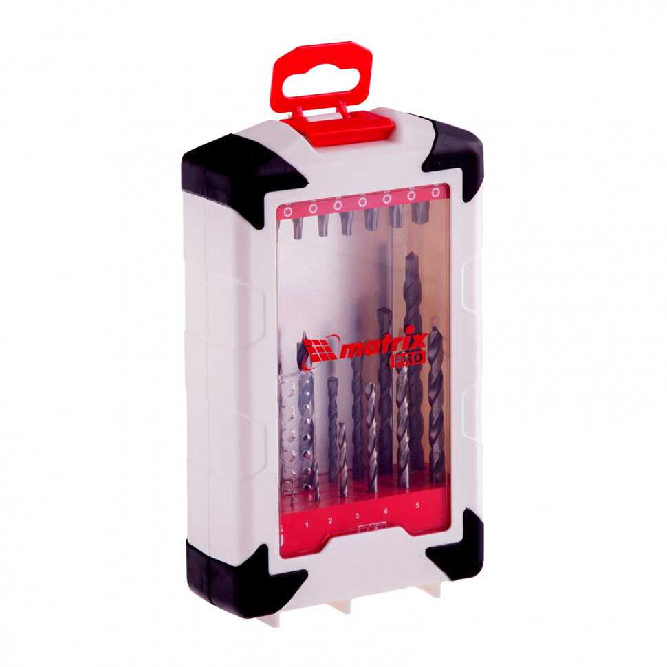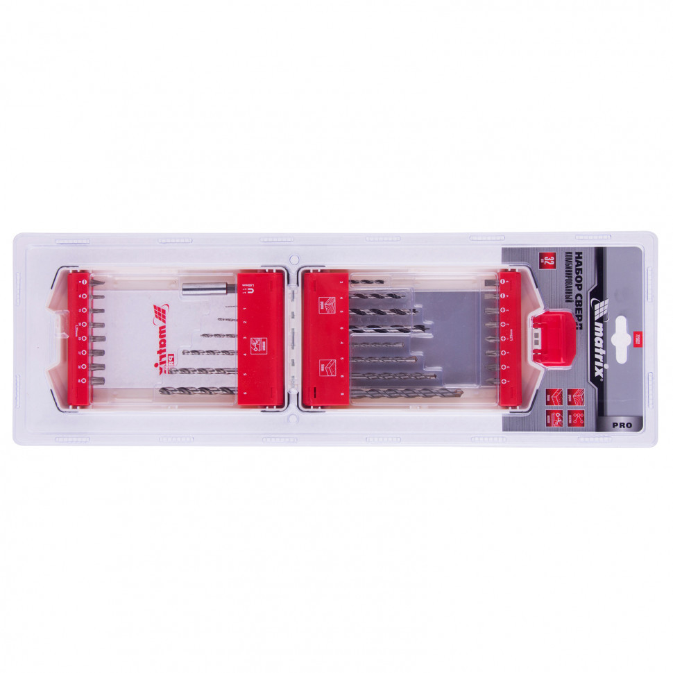 Набор сверл комбинированный, сверла по металлу 1-6 мм, бетону 4-8 мм, дереву 3-6 мм, биты 16 шт, адаптер, 32 предмета Pro Matrix