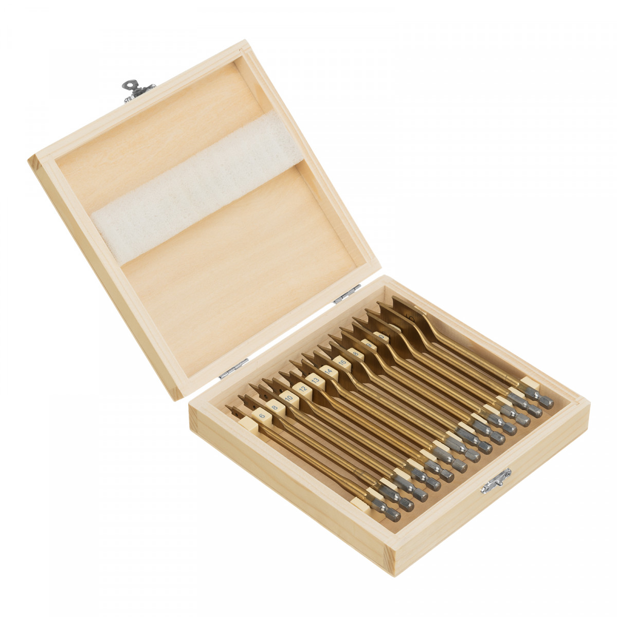 Набор сверл перовых по дереву, 6-8-10-12-13-14-16-18-19-20-22-24-25 мм, 13 шт, деревянный кейс Matrix