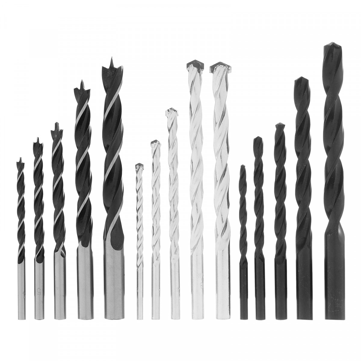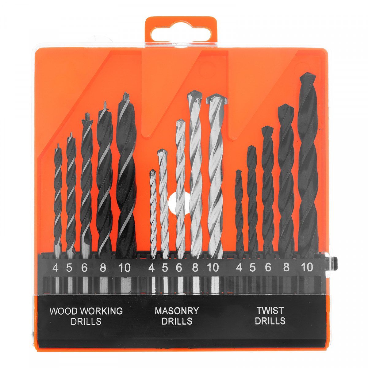 Набор Sparta 725085 включает 15 сверл с цилиндрическим хвостовиком, диаметром 4-5-6-8-10 мм, предназначенных для работ по бетону, металлу и дереву. В комплект поставки входят сверла самых популярных размеров, которые используют для бытового ремонта, монтажа и сборки различных конструкций.