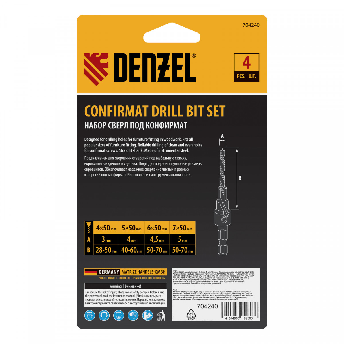 Набор сверл под конфирмат, 3-5 мм, 4 шт Denzel