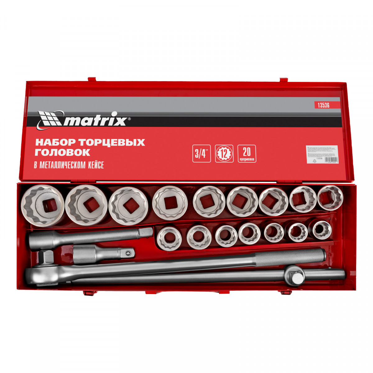 Набор торцевых головок 3/4", головки 19 х 50 мм, 20 предметов, в метал. боксе Matrix