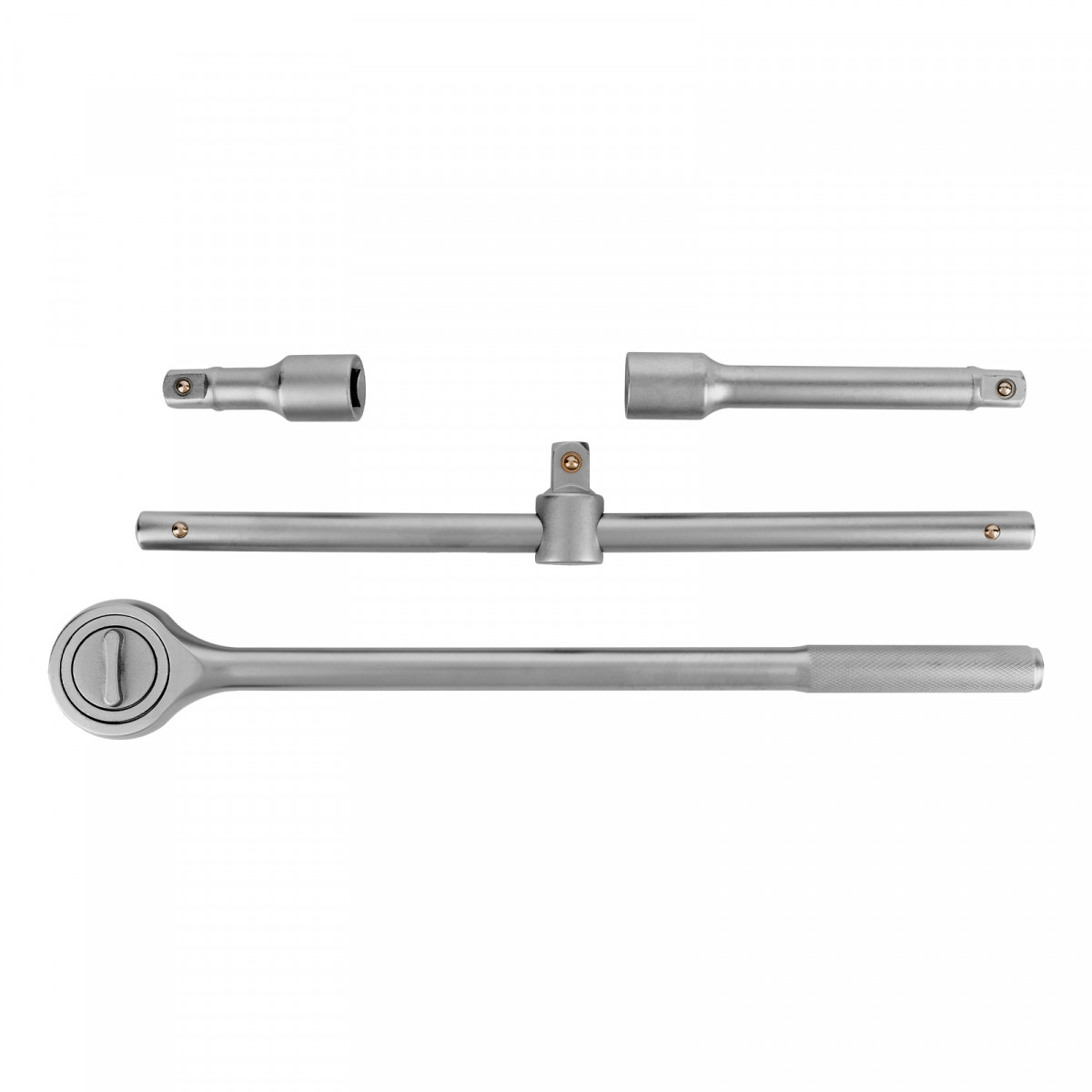 • Удобная работа в труднодоступных местах — в комплект поставки входит трещоточный ключ, вороток и удлинители 100 и 200 мм.
