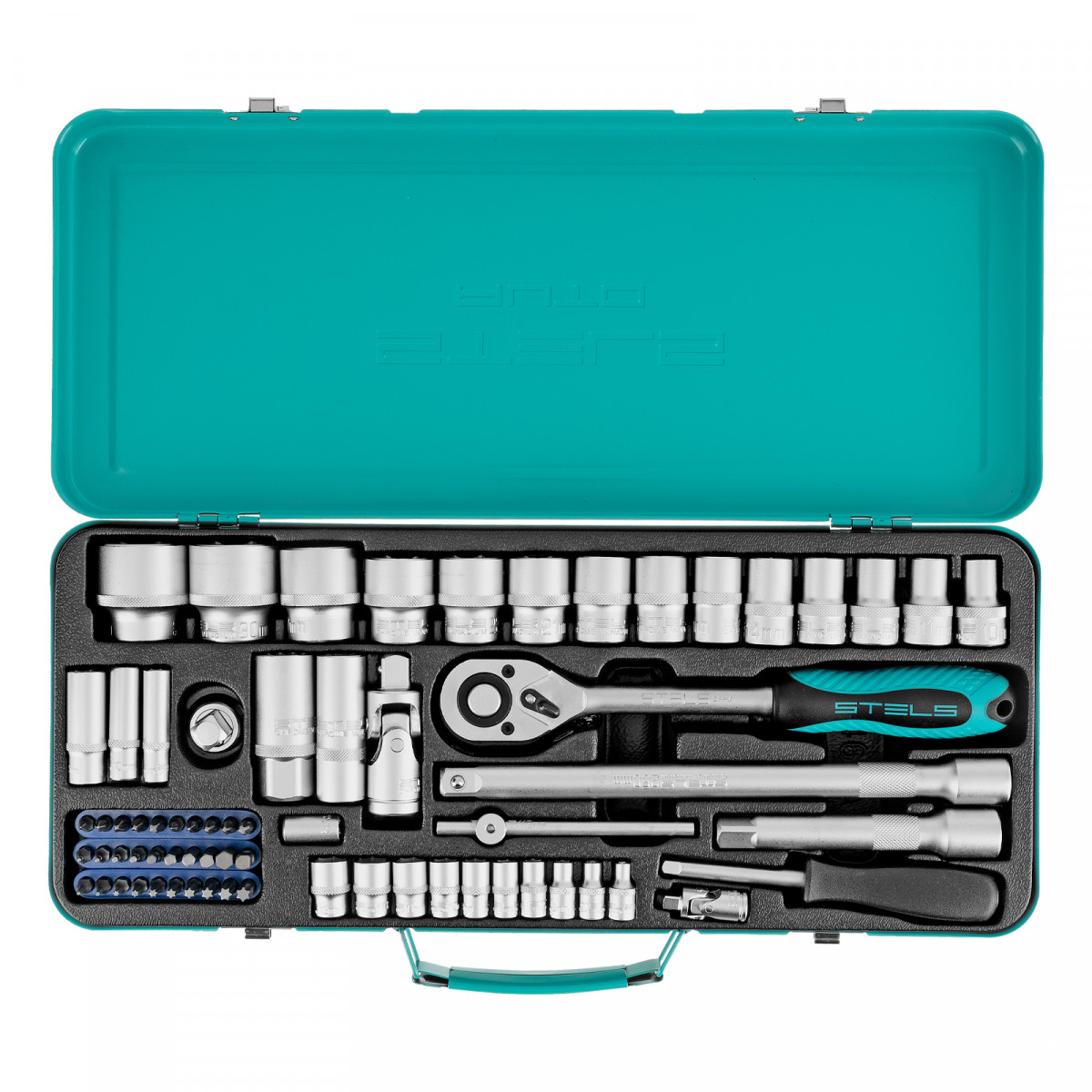 Набор торцевых головок с трещоткой, 1/2" и 1/4", 68 предметов Stels