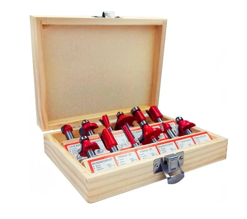 Набор твердосплавных фрез по дереву 12 шт vertextools 05-05-0512 используется для фигурного фрезерования дерева. Подходит для ДСП, МДФ, лиственных и хвойных пород.