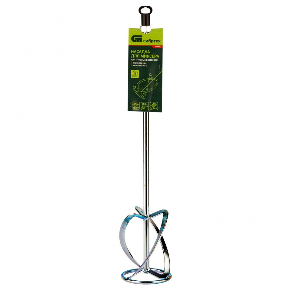Оцинкованная насадка для миксера Сибртех 848947 размером 120 х 590 мм, с хвостовиком М14, используется для приготовления штукатурных, цементных смесей, шпатлевок и других тяжелых растворов. Перемешивает состав снизу вверх, не давая тяжелым частицам оседать на дне, при этом нагрузка на инструмент минимальна. Насадка устанавливается на профессиональный электроинструмент с соответствующей присоединительной резьбой и используется на строительной площадке.