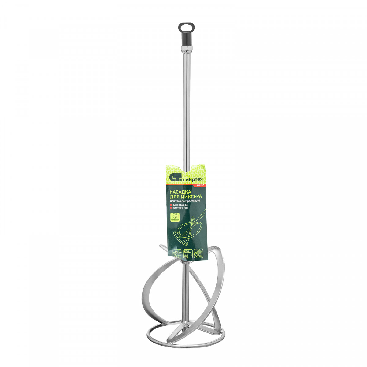 Оцинкованная насадка для миксера Сибртех 848967 размером 160 х 590 мм, с хвостовиком М14, используется для приготовления штукатурных, цементных смесей, шпатлевок и других тяжелых растворов. Перемешивает состав снизу вверх, не давая тяжелым частицам оседать на дне, при этом нагрузка на инструмент минимальна. Насадка устанавливается на профессиональный электроинструмент с соответствующей присоединительной резьбой и используется на строительной площадке.