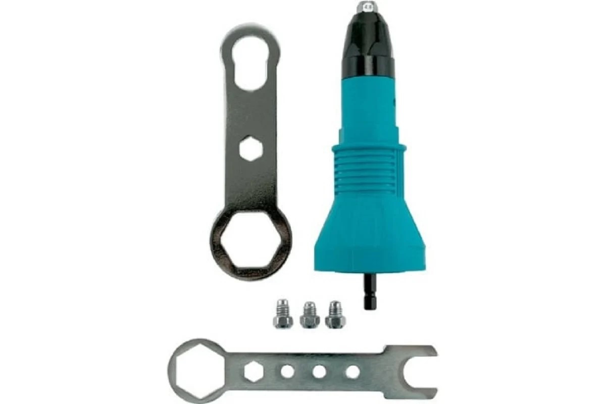 Насадка заклепочник для шуруповерта предназначена для установки вытяжных заклепок при помощи шуруповерта или дрели.Корпус насадки выполнен из крепкого полиамида со стекловолокном.Адаптер может работать со многими типами заклепок (алюминиевыми, из стали и нержавейки).