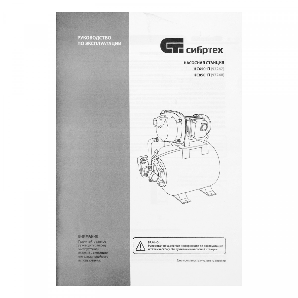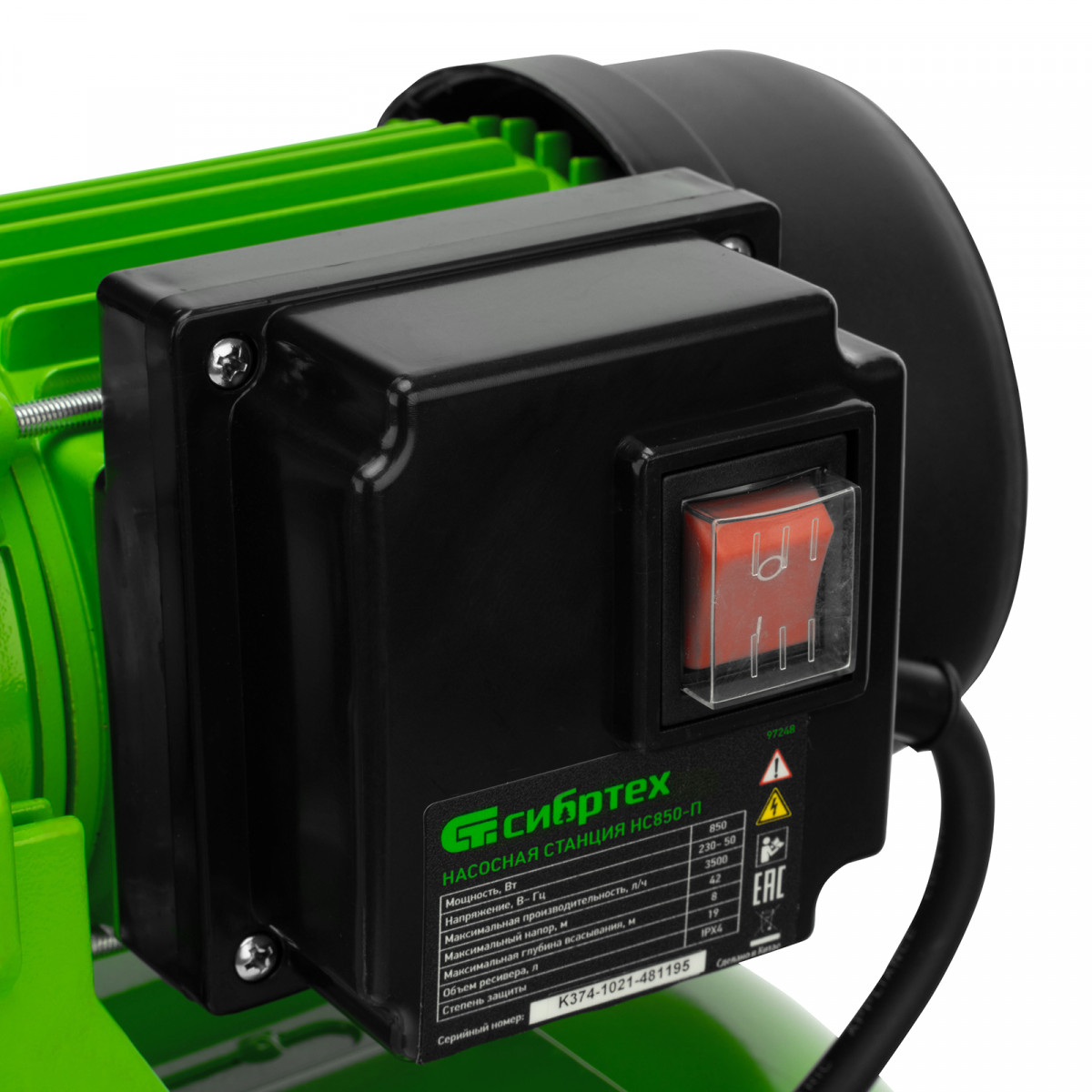 Насосная станция НС850-П, 850 Вт, напор 42 м, 3500 л/ч, ресивер 19 л Сибртех