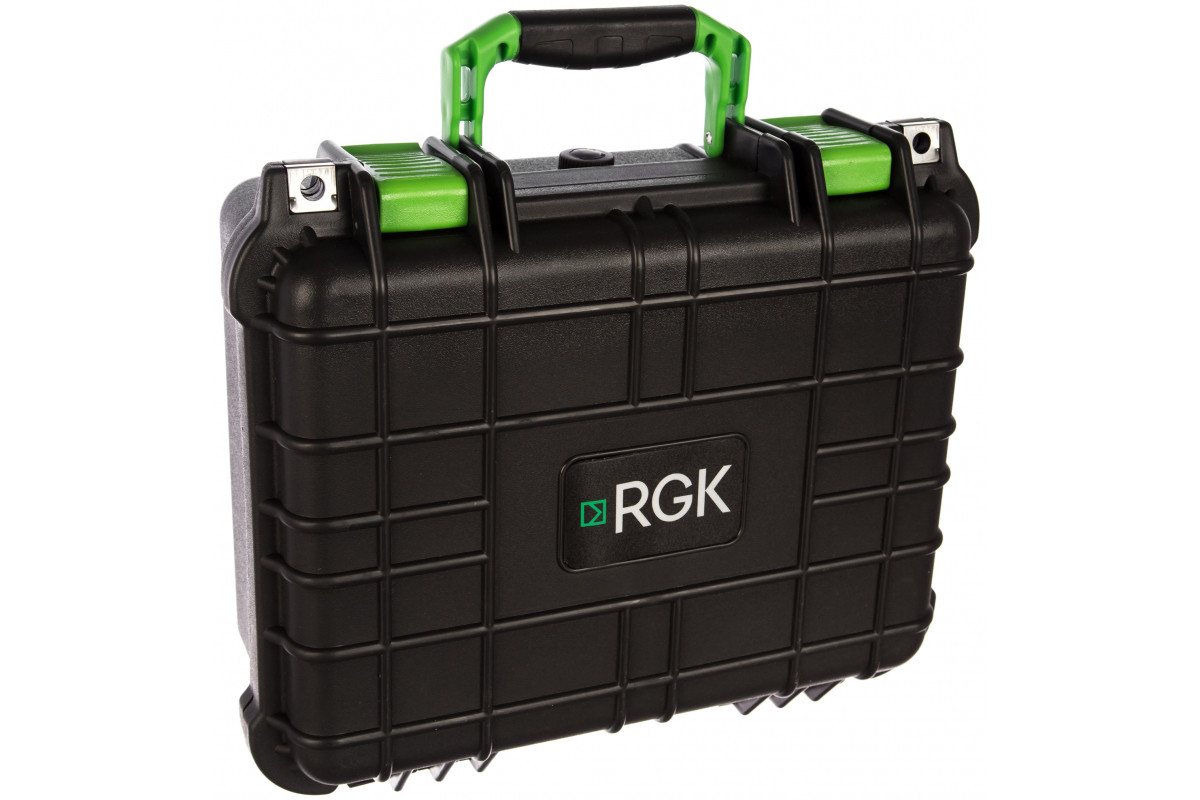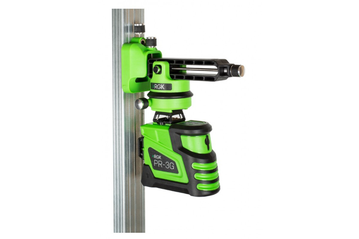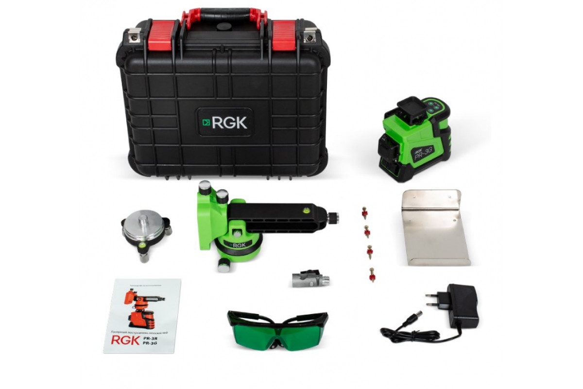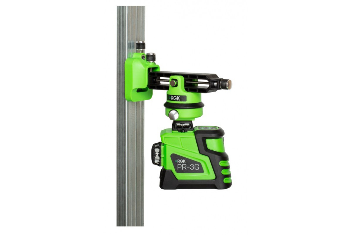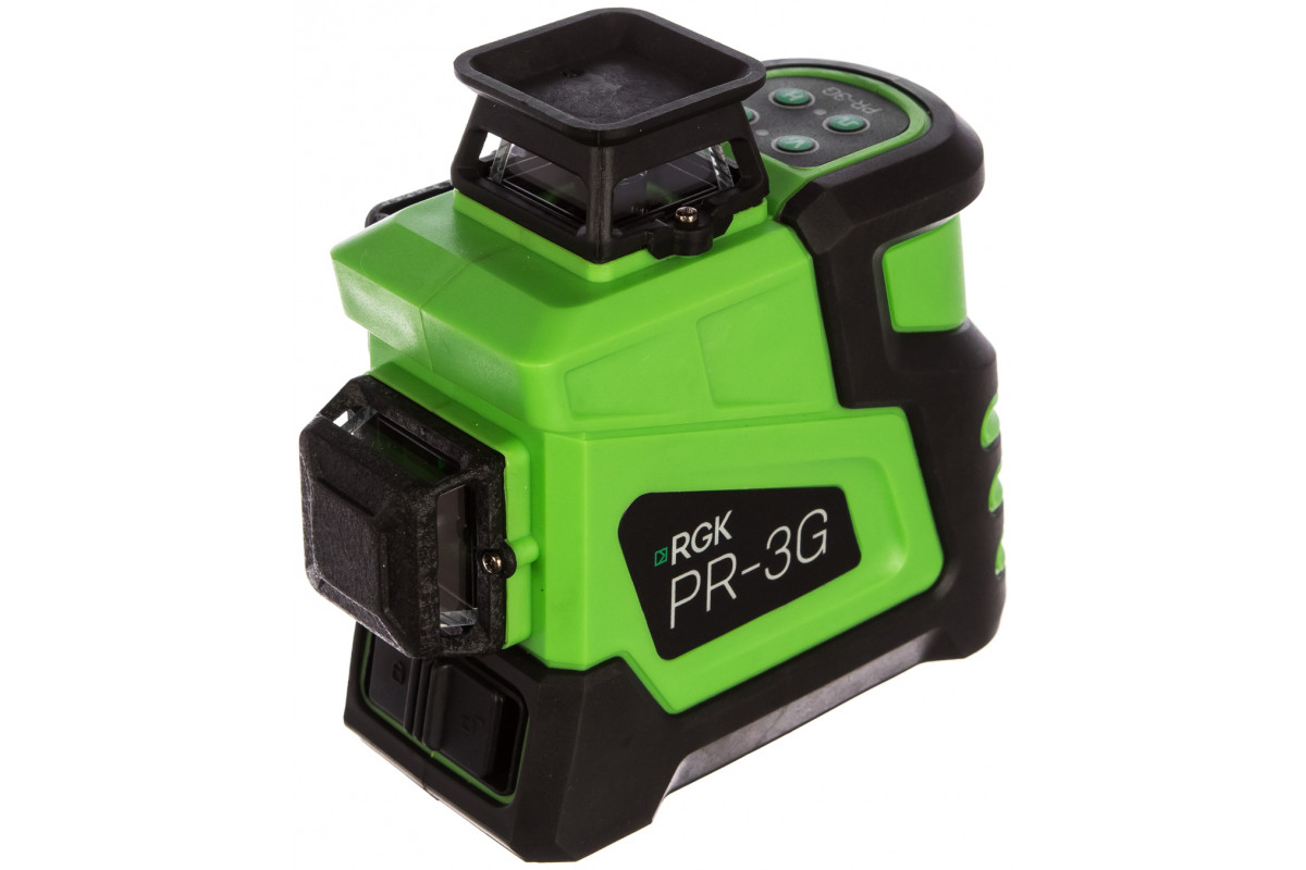 Лазерный построитель плоскостей RGK PR-3G проецирует горизонтальную и 2 вертикальные линии с углом развертки 360°. Луч зеленого цвета обеспечивает хорошую видимость при ярком солнечном свете и на темных поверхностях.