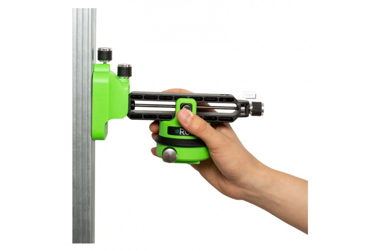По цене доступный. 3 зеленых проекции по 360 градусов. Есть режимы работы с приёмником и под наклоном, плоскости переключаются отдельными кнопками. Максимальное выдвижение на стреле от стены - на 11 см. Успокаивается в районе 3 секунд, как и написано в инструкции. Блокровкарка производится без люфтов и шумов. На расстоянии в 15 метров толщина луча около 4-5 мм, причем их достаточно хорошо видно, даже при свете.