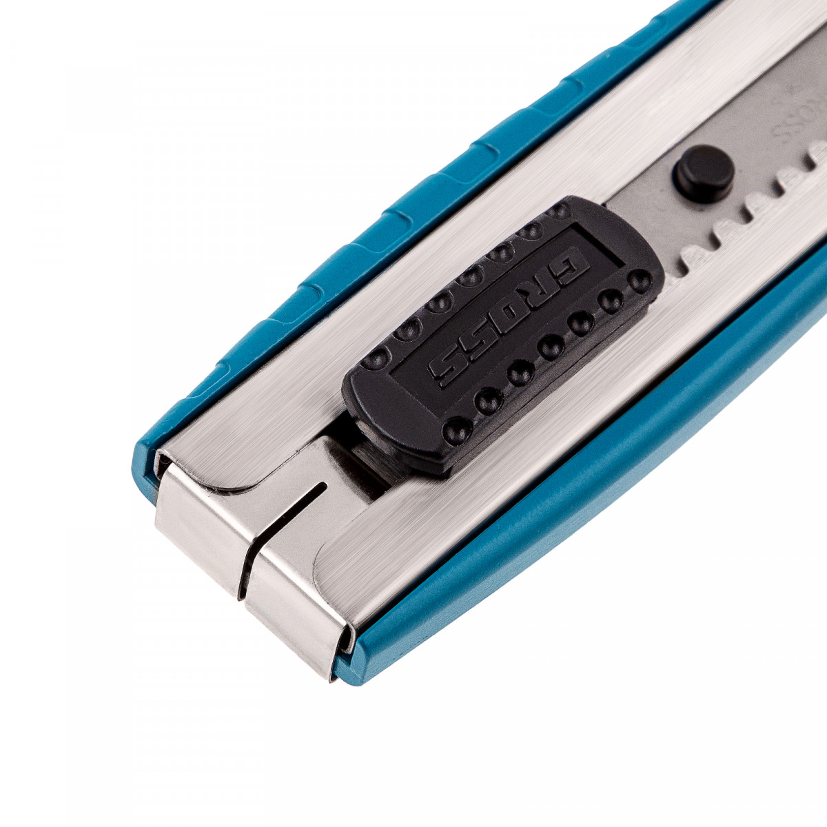 Нож Gross 78897 из стали SK-5, длиной 160 мм, в металлическом корпусе, с выдвижным сегментным лезвием шириной 18 мм, металлической направляющей и клипсой для ремня, — профессиональный инструмент, предназначенный для разрезания линолеума, картона, кожи, обоев и других материалов. Используется при проведении ремонтных и отделочных работ, будет полезен в хозяйстве.