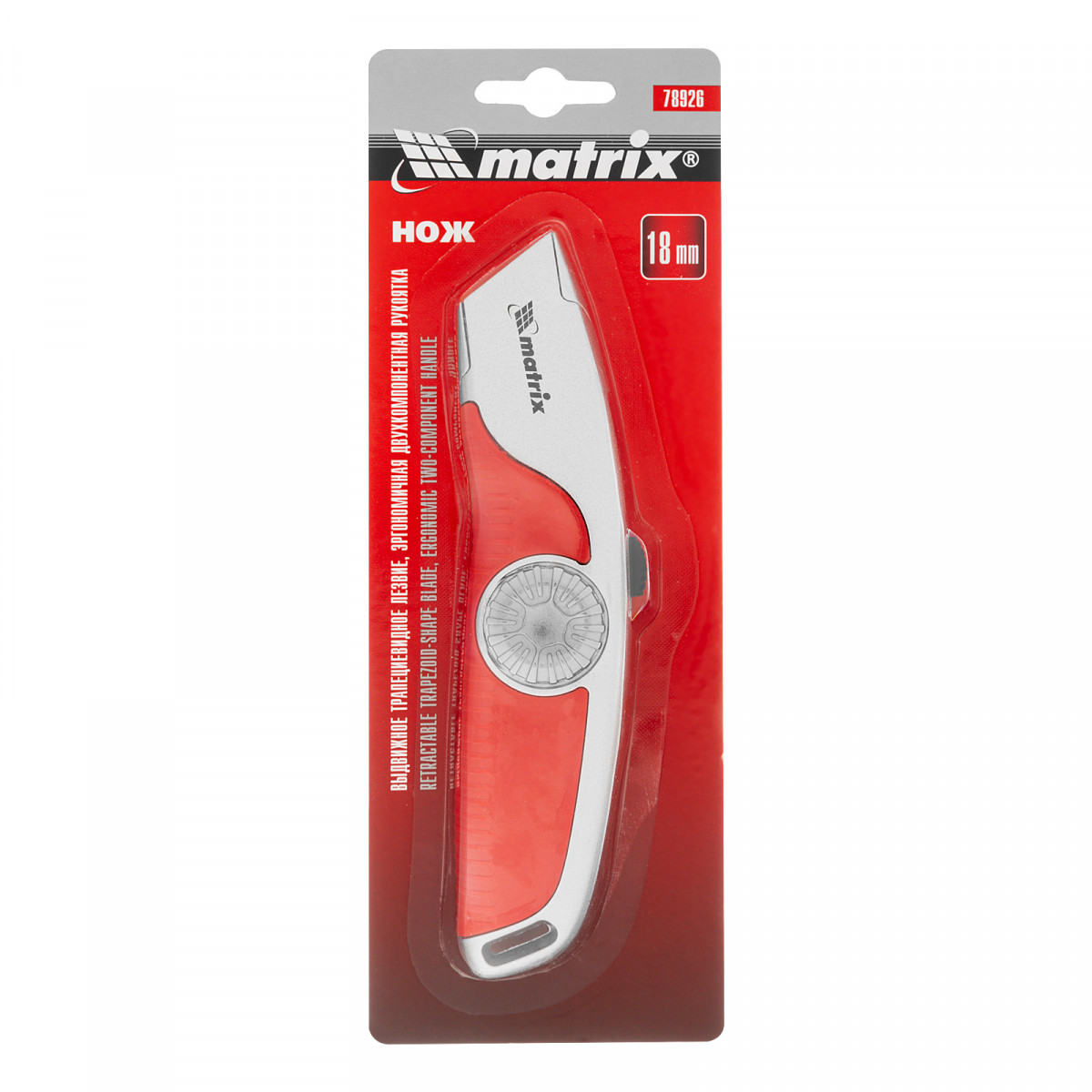 Нож, 19 мм, выдвижное трапециевидное лезвие, эргономичная двухкомпонентная рукоятка Matrix