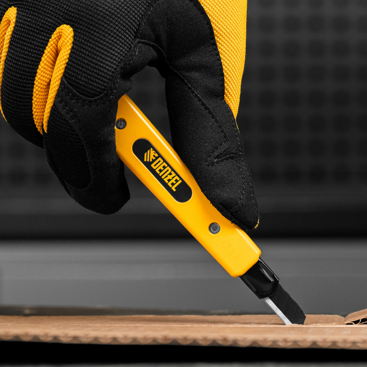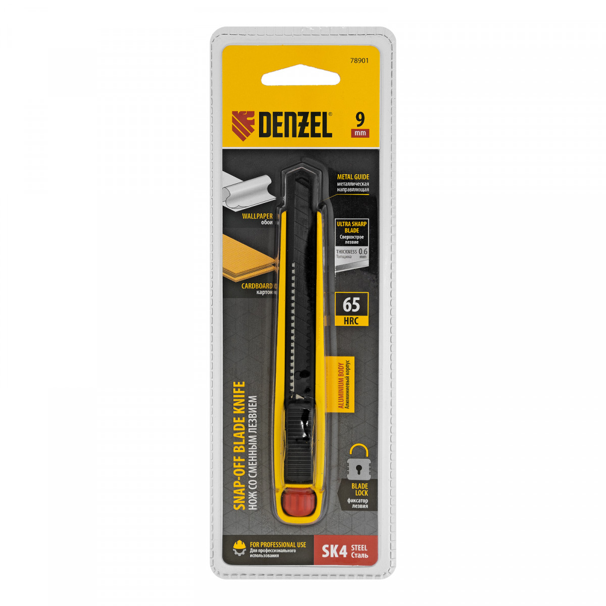Нож, 9 мм, сменное лезвие, SK4, алюминиевый корпус, торцевой зажим Denzel