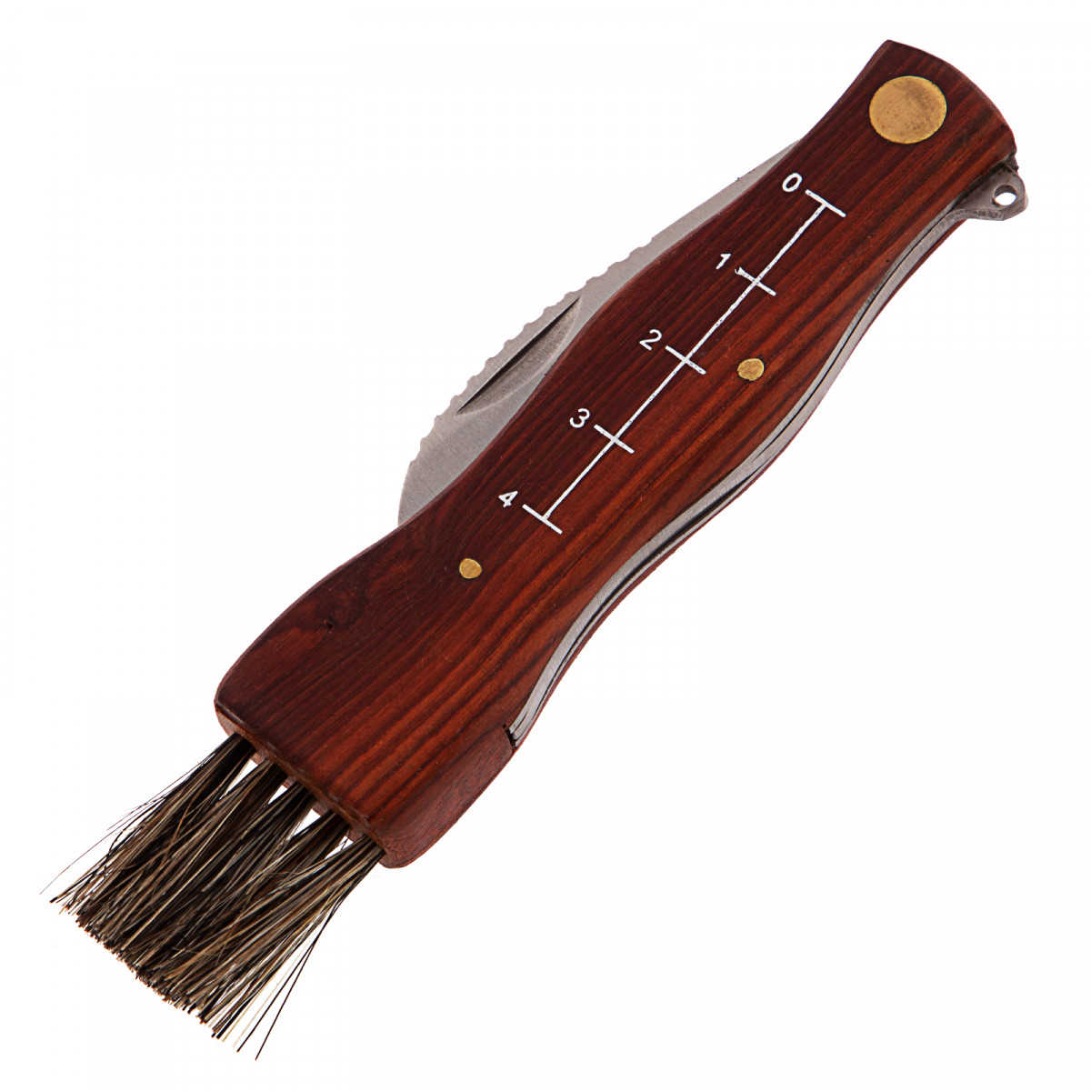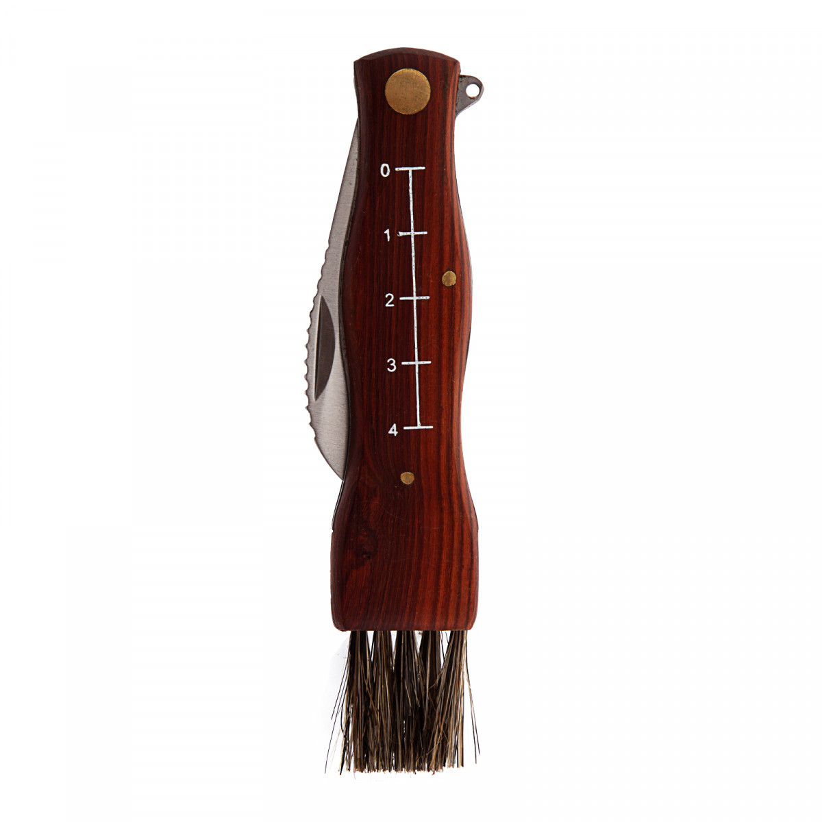 • Нож оснащен кисточкой из натуральной щетины для очищения шляпок грибов от мелких листьев, хвои и другого мусора.