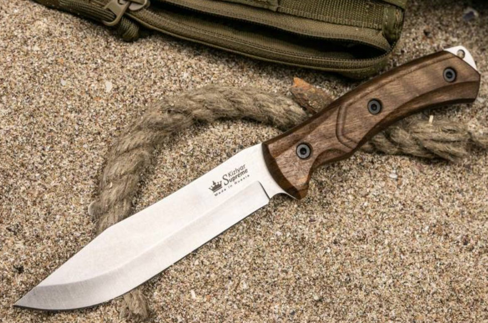 Элегантный длинный нож с сатинированным клинком из стали AUS-8 с высокой твердостью 58-60 HRC.