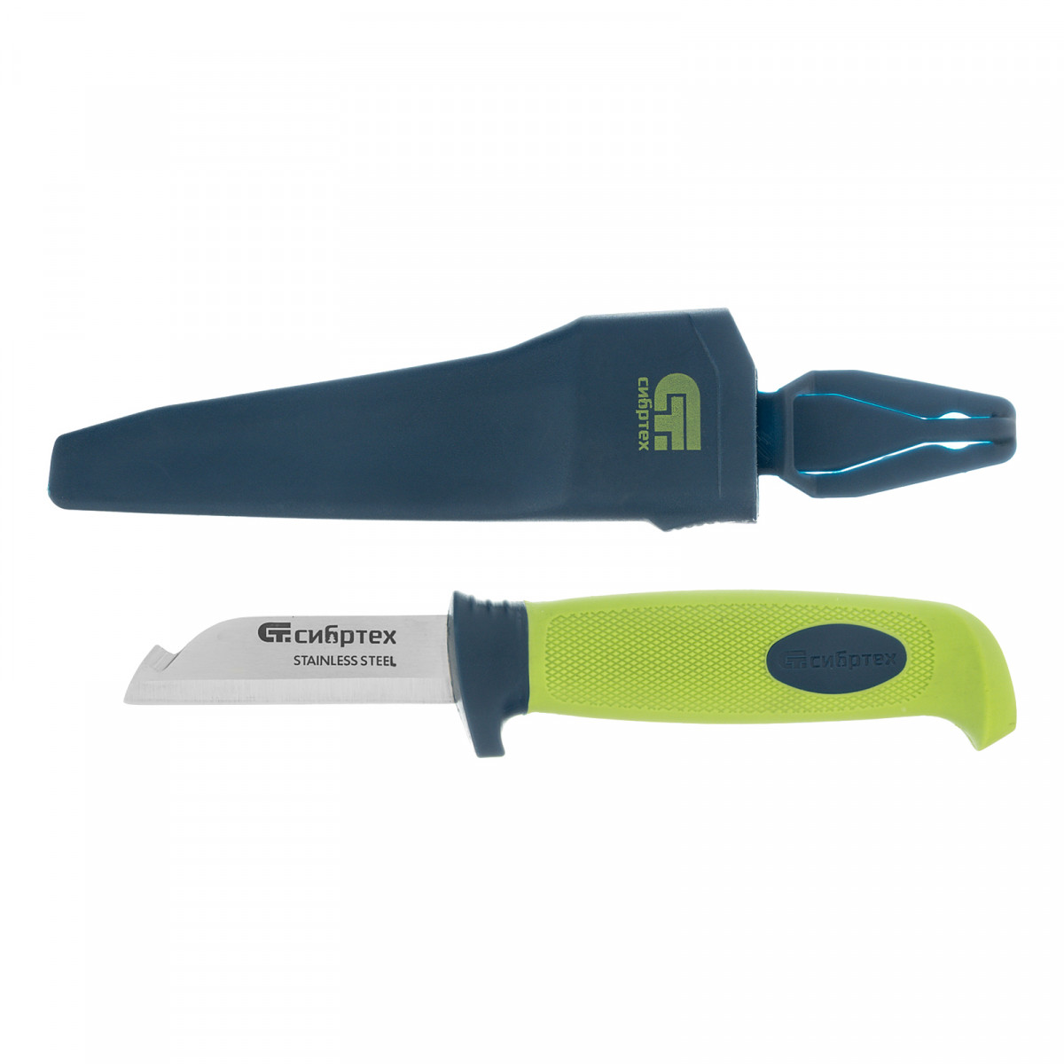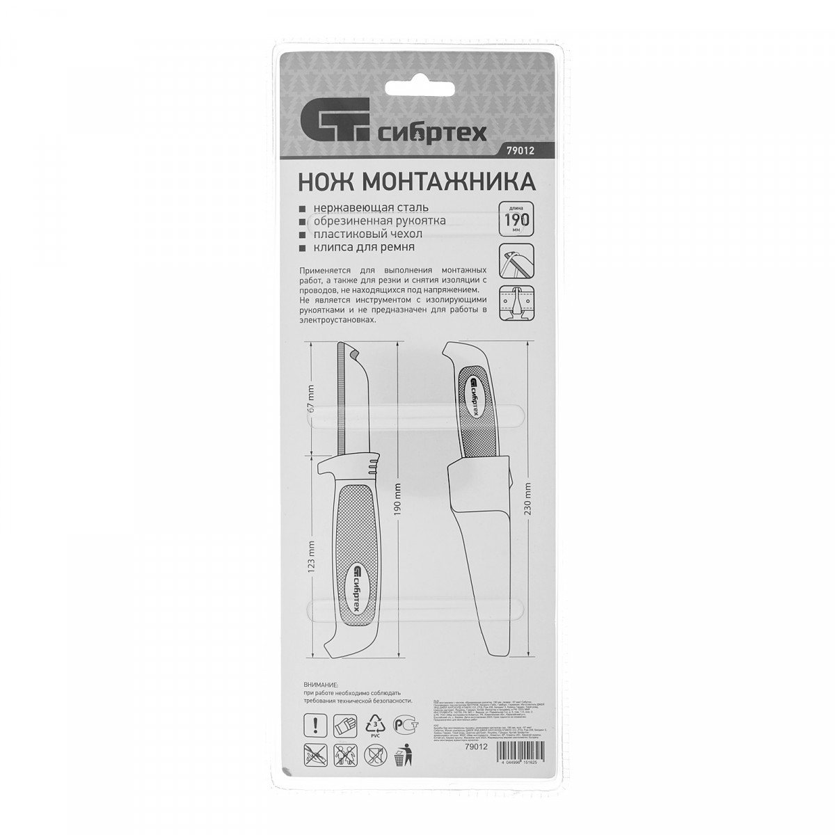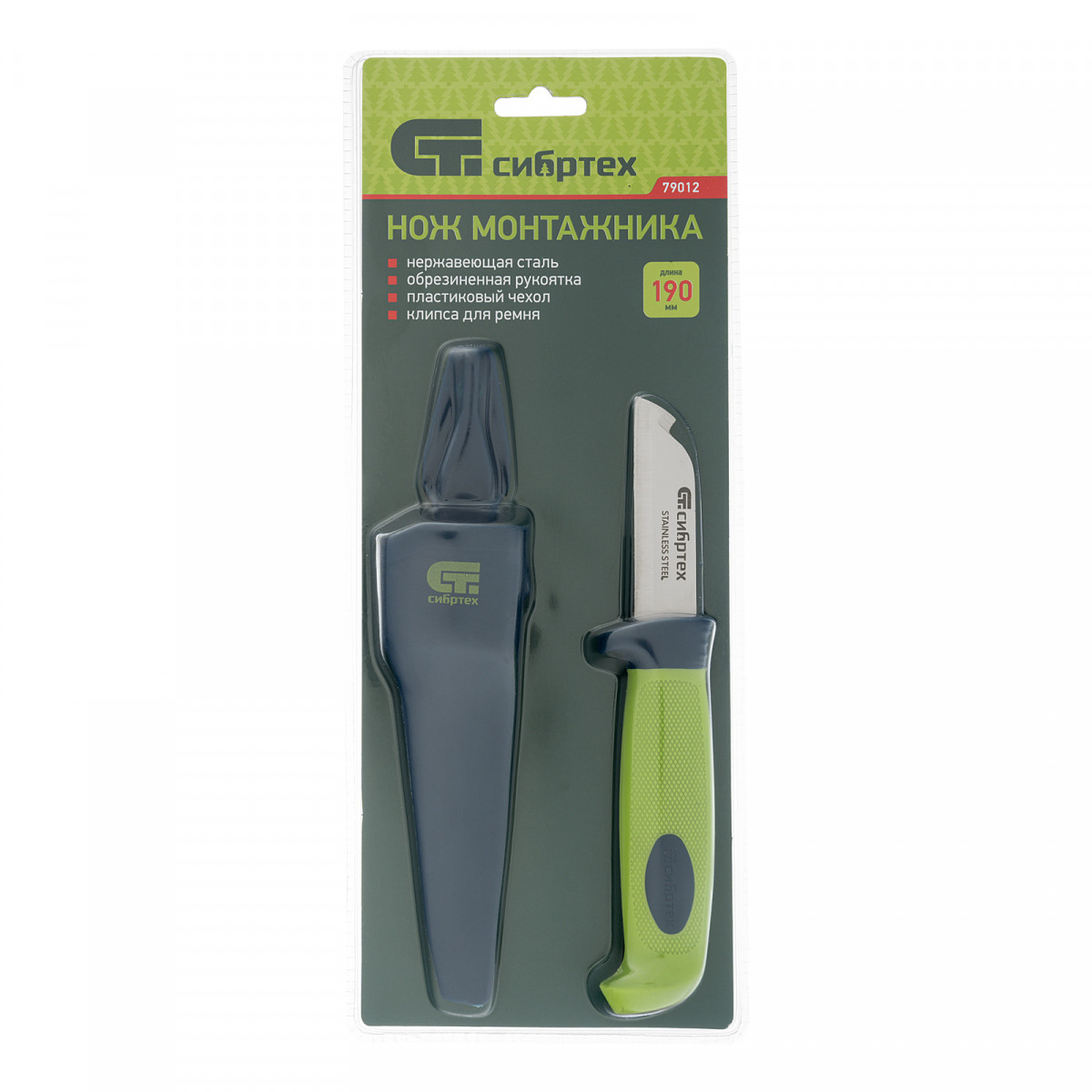 Нож монтажника с чехлом, обрезиненная рукоятка, 190 мм, лезвие 67 мм Сибртех