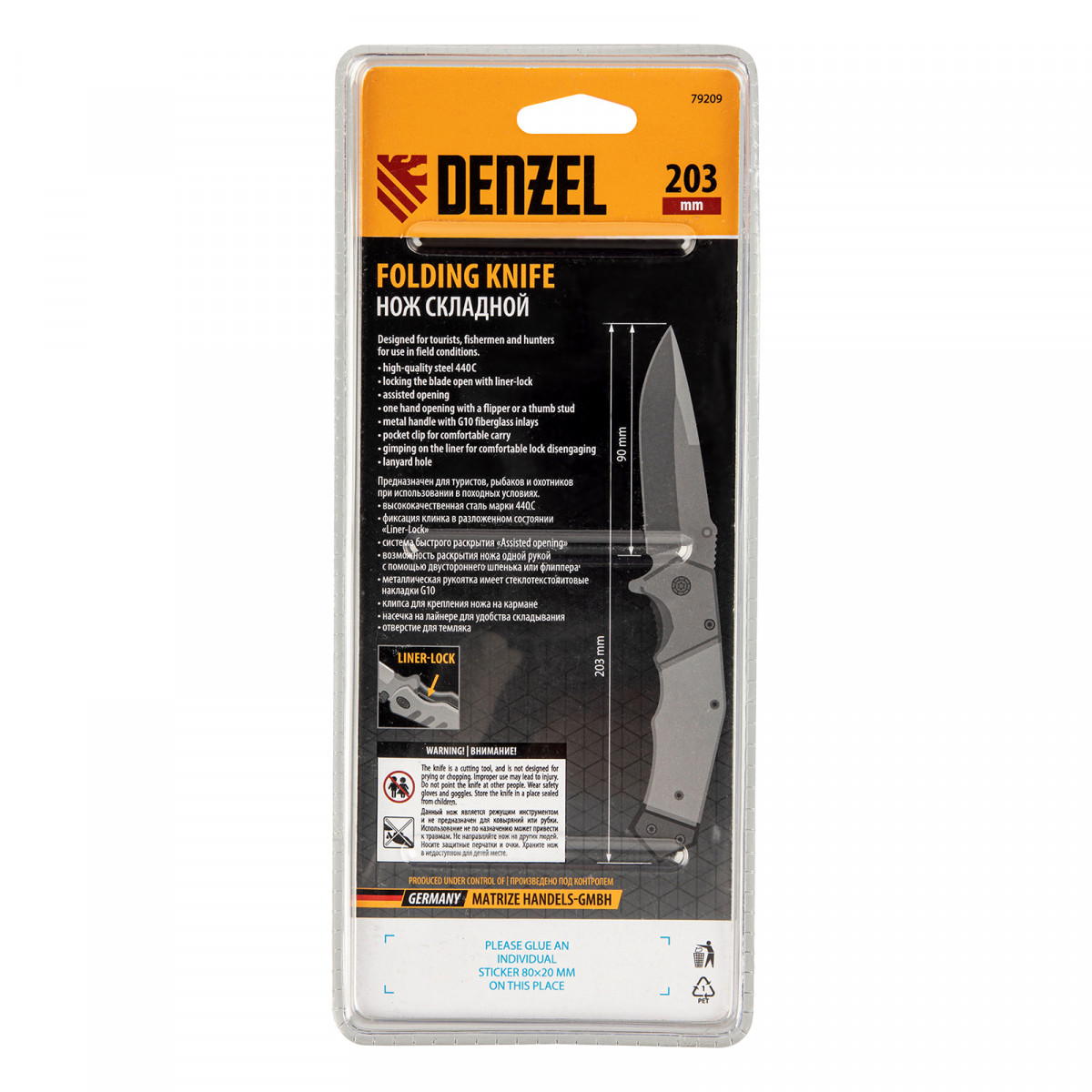 Нож складной, многоцелевой, системы Liner-Lock, с накладкой G10 на эргономичной рукоятке Denzel