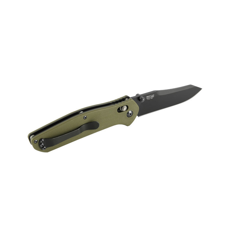 На рукоять нанесены яркие зелёные полосы, которые накапливают свет. Даже в темноте нож можно будет легко отыскать. Вам представлены два цвета рукоятки на выбор: зелёный и чёрный. Ещё на ней располагается чёрная съёмная клипса средней жёсткости, которая позволяет прицепить нож к ремню или рюкзаку. За фиксацию отвечает замок G-Lock, непроизвольное открытие исключено.