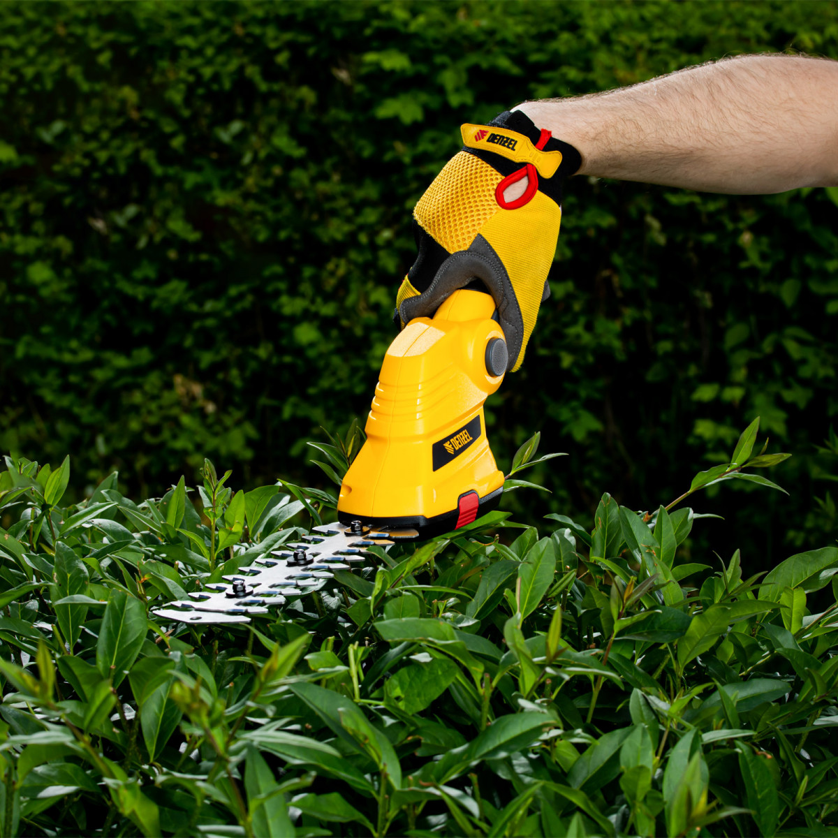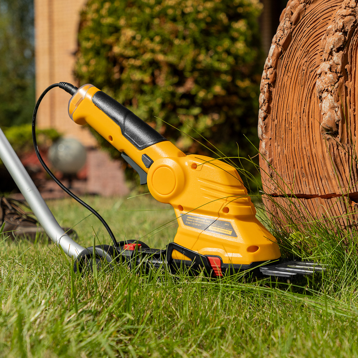 • Долговечность — медная обмотка двигателя устойчива к перегреву и обеспечивает стабильную работу ножниц-кустореза даже при высоких нагрузках.