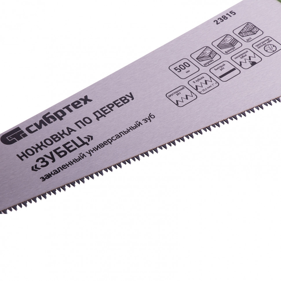 Ножовка по дереву "Зубец", 500 мм, 7-8 TPI, каленый зуб 3D, двухкомпонентная рукоятка Сибртех