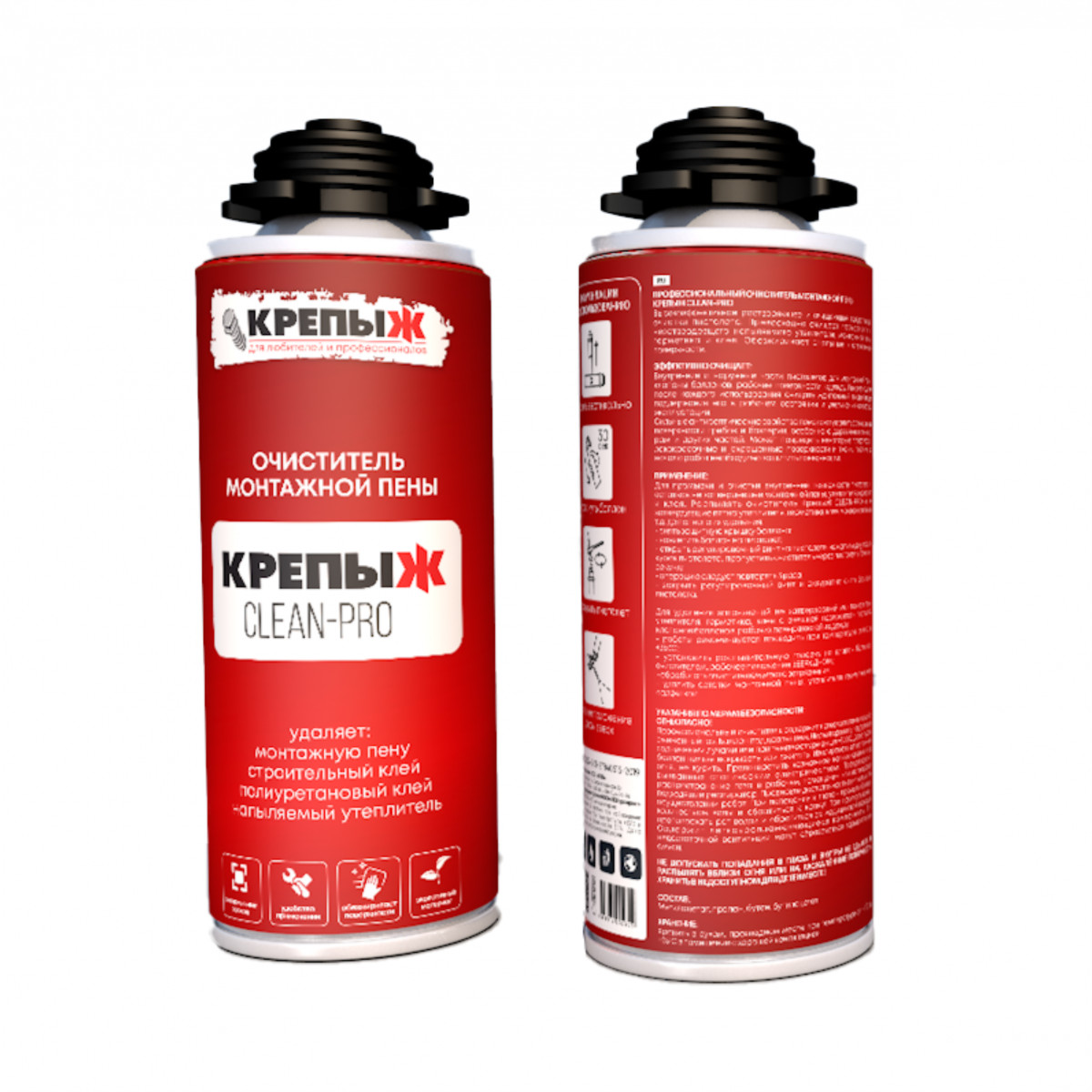 Профессиональный очиститель монтажной пены CLEAN-PRO высокоэффективное растворяющее и очищающее средство для очистки пистолета. Превосходно очищает поверхности от незатвердевшего напыляемого утеплителя, монтажной пены, герметика и клея. Обезжиривает стальные и стеклянные поверхности.