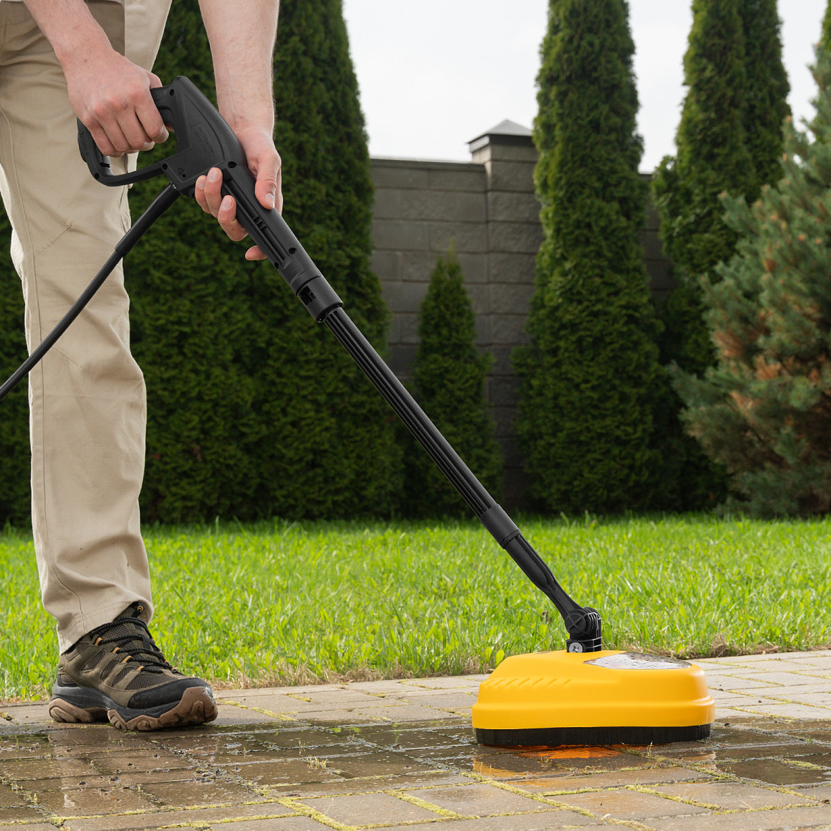 Насадка Denzel 58306 для моечных машин высокого давления серии R — очиститель вертикальных и горизонтальных поверхностей: фасадов, стен, дверей и дорожек. Благодаря щетке с жестким ворсом эффективно справляется даже с сильными загрязнениями.