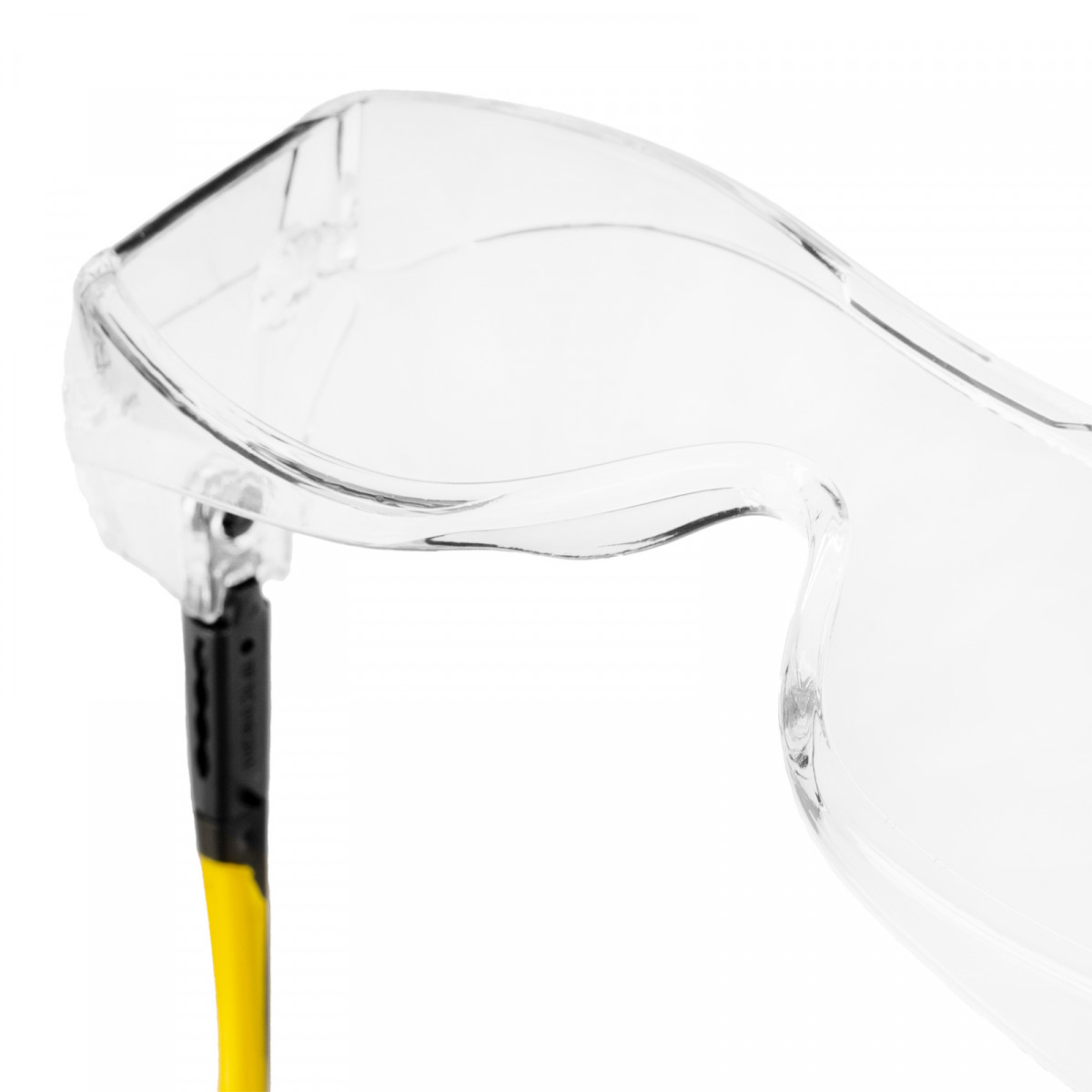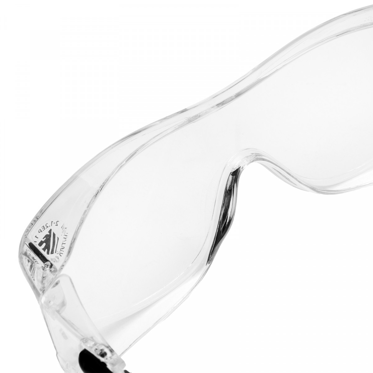 • Продуманная конструкция — особая форма линз обеспечивает боковую и надбровную защиту, а также позволяет носить защитные очки вместе с коррригирующими.