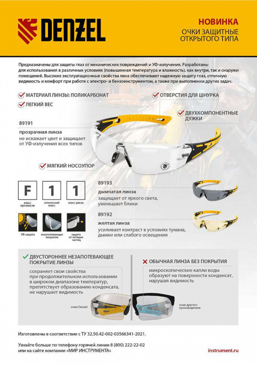 - Отличная видимость – на линзы нанесено двустороннее твердое незапотевающее покрытие в соответствии с ГОСТ 12.4.309.2-2016.