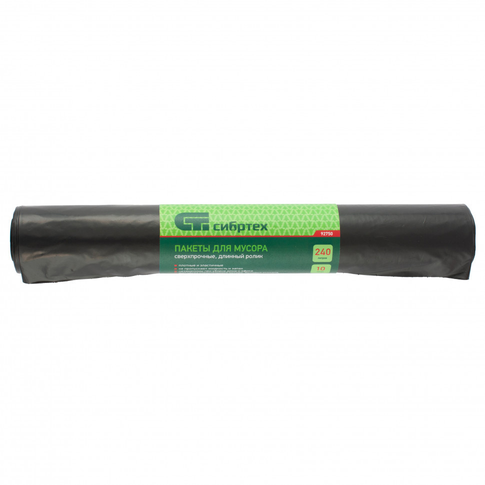 Пакеты для мусора 240 л x 10 шт, пвд, сверхпрочные, длинный ролик,Сибртех