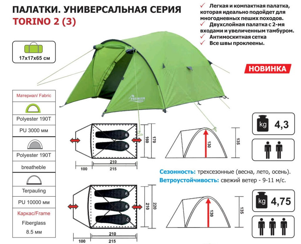 Палатка TORINO-3 PREMIER – трехместная палатка универсальной серии, которая идеально подойдет для пеших походов и велосипедных путешествий.