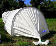 Высота - 115 см, Ширина - 115 см, Длина - 4 м. 1) Материал чехла - Райфенхаузер SSS-45 2) Дуга - 3,20м, жесткая из белого ПВХ 3) Торцы - обычные с завязками, без дверей 4) Ленты для натяжки с торцов - 4 шт. 5) Клипс - полная комплектация. Ножек-колышков - 6 шт.