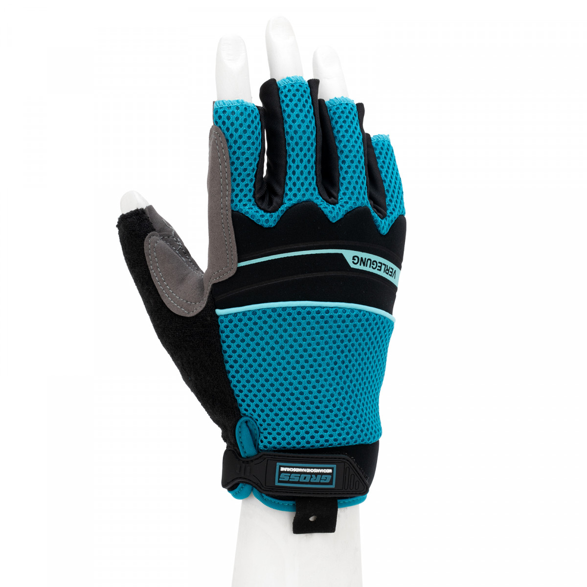 Перчатки комбинированные облегченные Gross AKTIV 90310 с открытыми пальцами, размера XL (10), служат для защиты рук от механических повреждений и образования мозолей. Формованные накладки на ладонях препятствуют появлению синяков и ссадин. Открытые пальцы позволяют использовать перчатки в жаркую погоду, при этом подверженные износу части перчатки остаются защищенными. Изделия могут использоваться при проведении строительных и ремонтных работ, а также во время занятий спортом или активного отдыха.