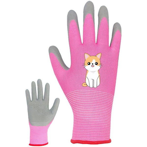 Перчатки нейлоновые Котик с полиур. покр. полуобл., розовые M